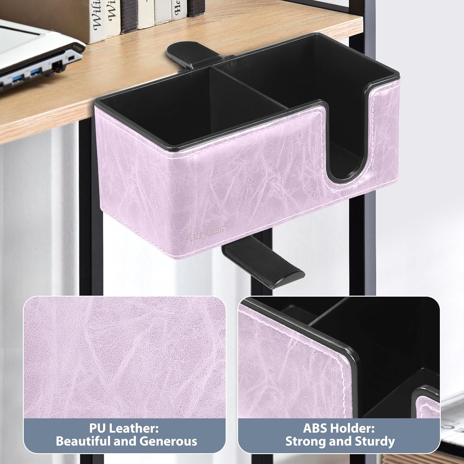 Desk Cup Holder Clip on Pen Holder Headphone Hanger Headset Stand Rotatable Clamp Hook Under Desk (Violet)