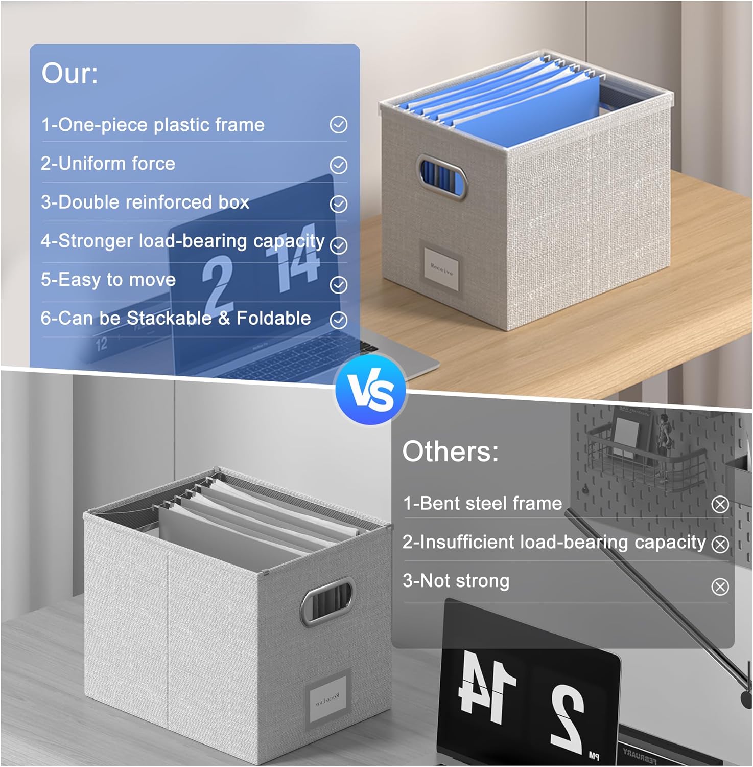- [Double Reinforcement File Box ]- We believe you deserve better quality, Our file box organizer is not only exquisite in appearance and fine workmanship,but also stronger. We use the bottom into the bottom plate and the top into the integrated one-piece plastic frame slides to stabilize the box. You can move the file boxes freely without worrying about the box being unstable.
