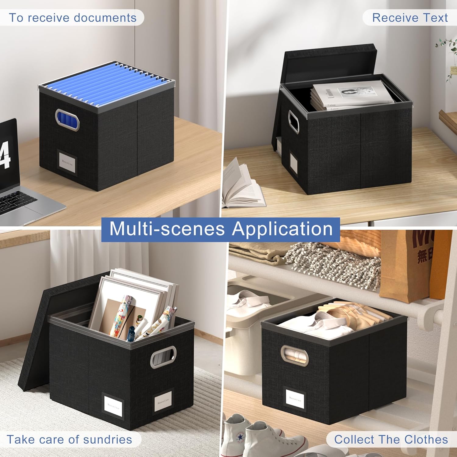 - [Multifunctional Filing Storage ]- File box exterior in linen fabric, inside is made of thickened PP hollow board, more lightweight,not easily deformed. The file storage organizer dimensions 13.2 x 10.1 x 10.1 inches, provides more storage space for the file. This file box organizer is perfect for letter-size documents. The functional and decorative design of the box creates a flat and unclutred space. It also acts as a small filing cabinet for tax documents and other documents storage.