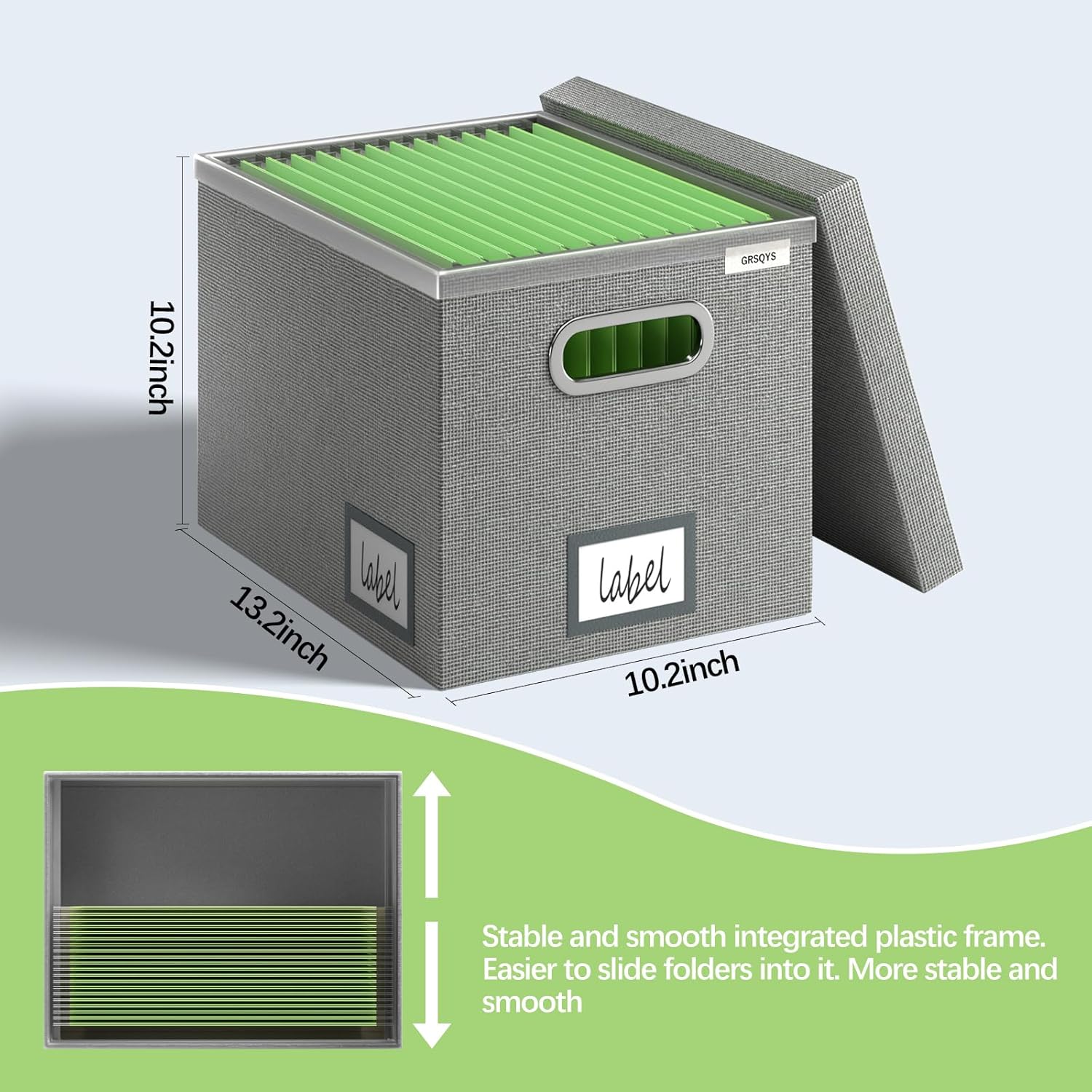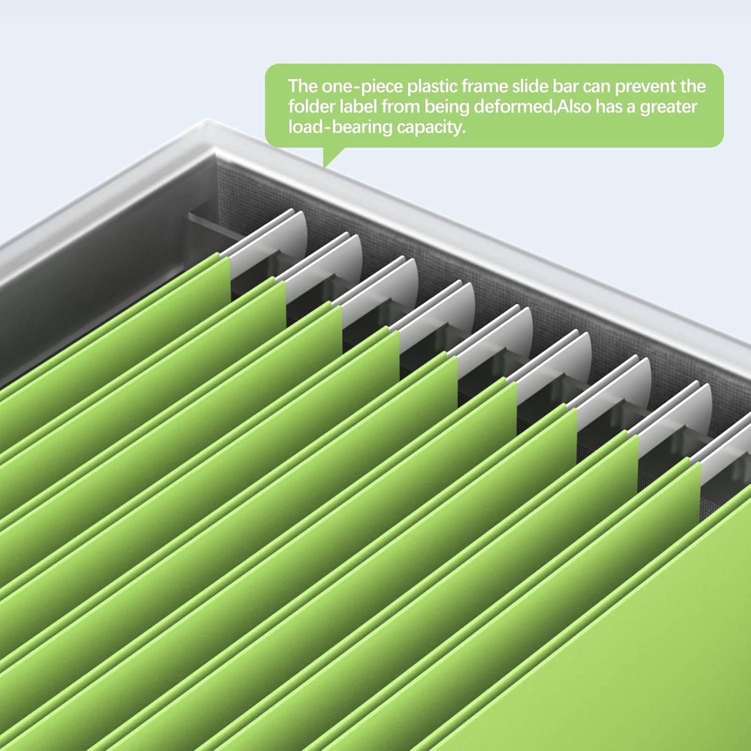 - [Upgraded File Hanging System] - Different from other file box hanging systems, Our file box hanging has been improved and upgraded. You only need to put the one-piece plastic frame slides on the top of the file box easily. After completion, The file box hanging systems has a greater load-bearing capacity, you can not only slide the hanging file back and forth smoothly, but also further strengthen the file box to prevent the box from shaking.