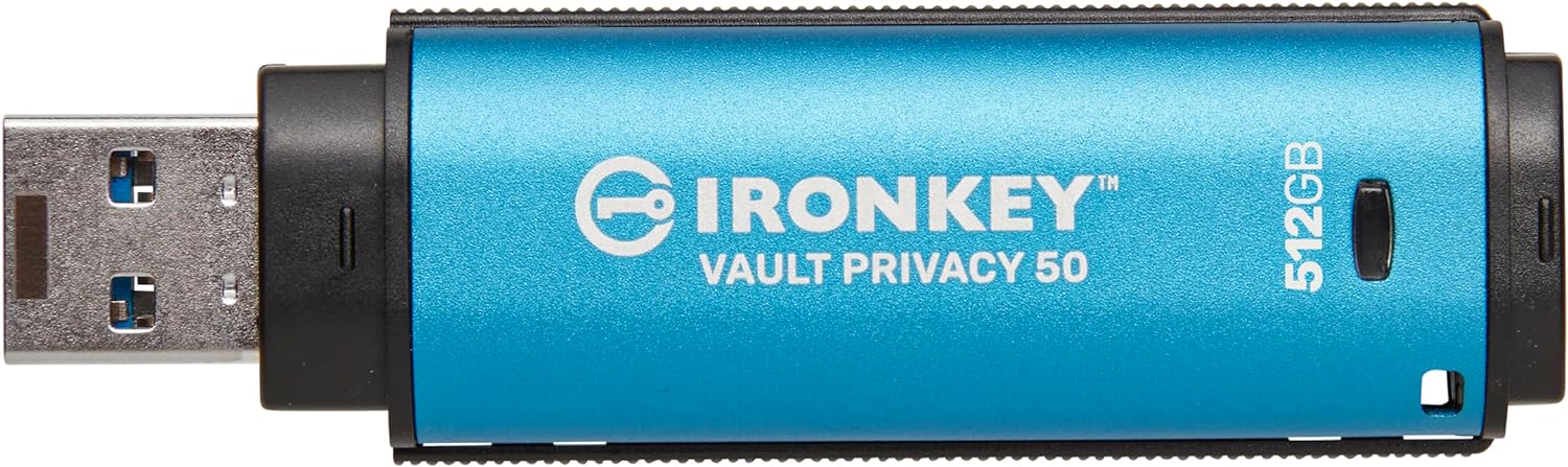 Kingston Ironkey Vault Privacy 50 USB-A 512GB Encrypted Flash Drive | FIPS 197 Certified | XTS-AES 256-bit | BadUSB and Brute Force Protection | Mult-Password Option | IKVP50/512GB