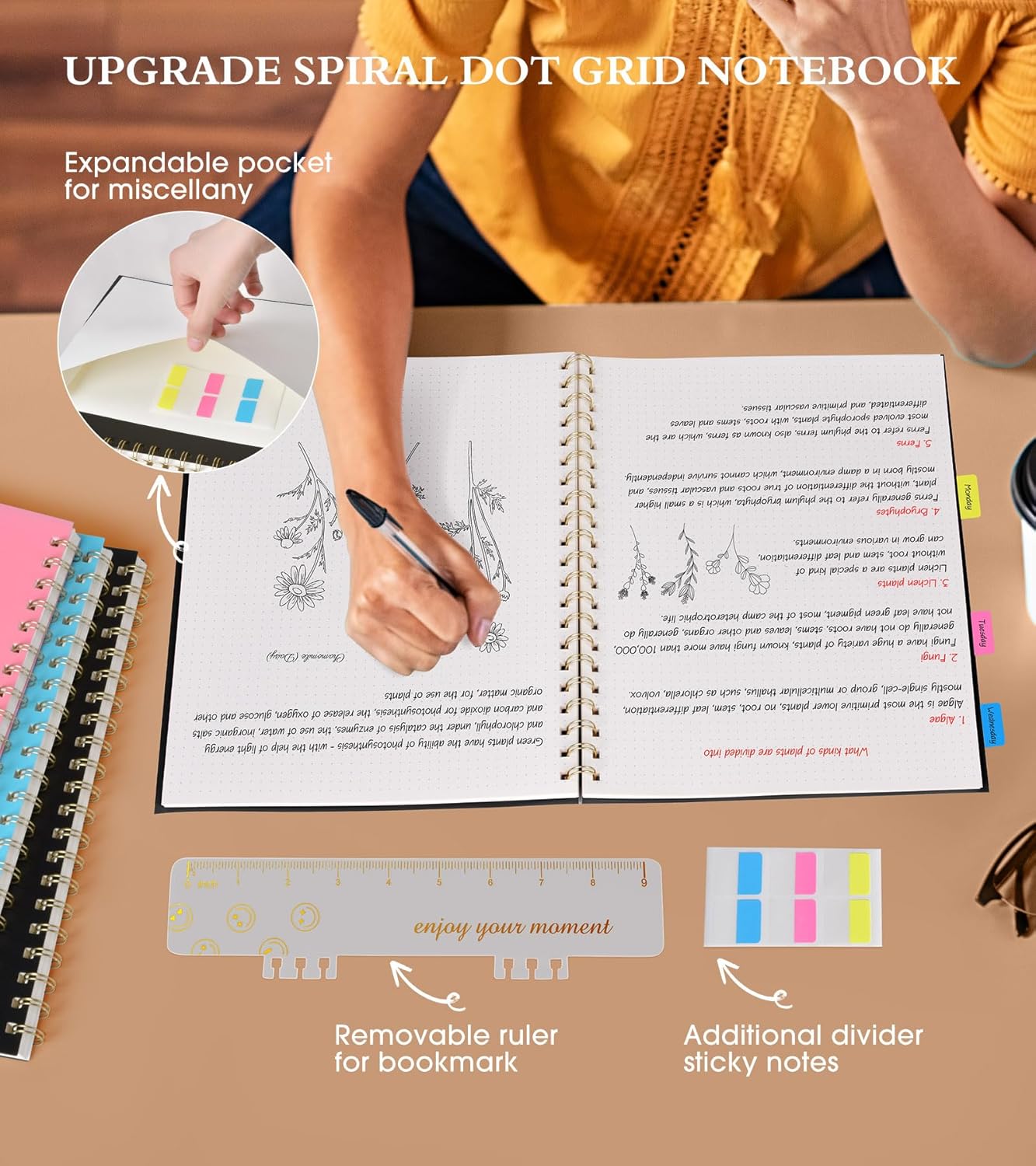 - 【A4 Dotted Spiral Journal Notebook】 Large a4 size 8.5"x11" dotted notebook, standard 5mmx5mm dot grid spacing to keep your notes organized, creating a smooth writing experience. The professional sturdy water-resistant plastic hard cover will protect your bullet notebooks to last for years, which has oil-resistant and anti-bending properties, effectively protecting the internal paper of the journal and provides a comfortable writing surface.