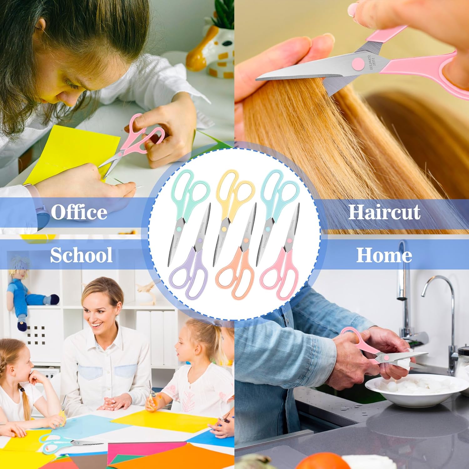 - 8 inch Scissors Bulk -- 6-pack of 8-inch scissors for office, scissors for school, scissors for home, scissors for fabric cutting, scissors for sewing, making them ideal for almost any kinds of tasks. Great scissors for Back to School, Mother's Day, Birthday gift, Christmas stocking stuffers, Painting, Easter Day, Valentine's Day, Thanksgiving Day, Party, Happy New Year's Gift Idea.