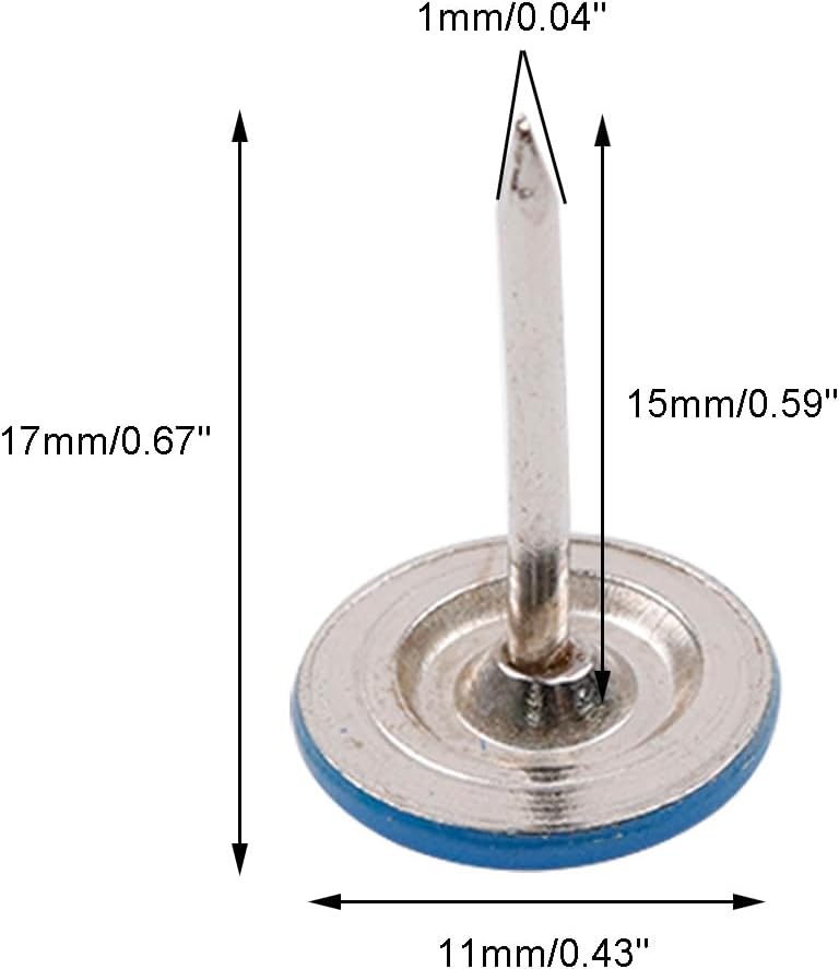 - PACKAGE CONTENT: 100Pcs blue flat head upholstery tacks, enough quantity to meet your daily needs. Total Size:11mm*17mm/ 0.43" * 0.67"(Dia.xH), elegant for furniture decoration