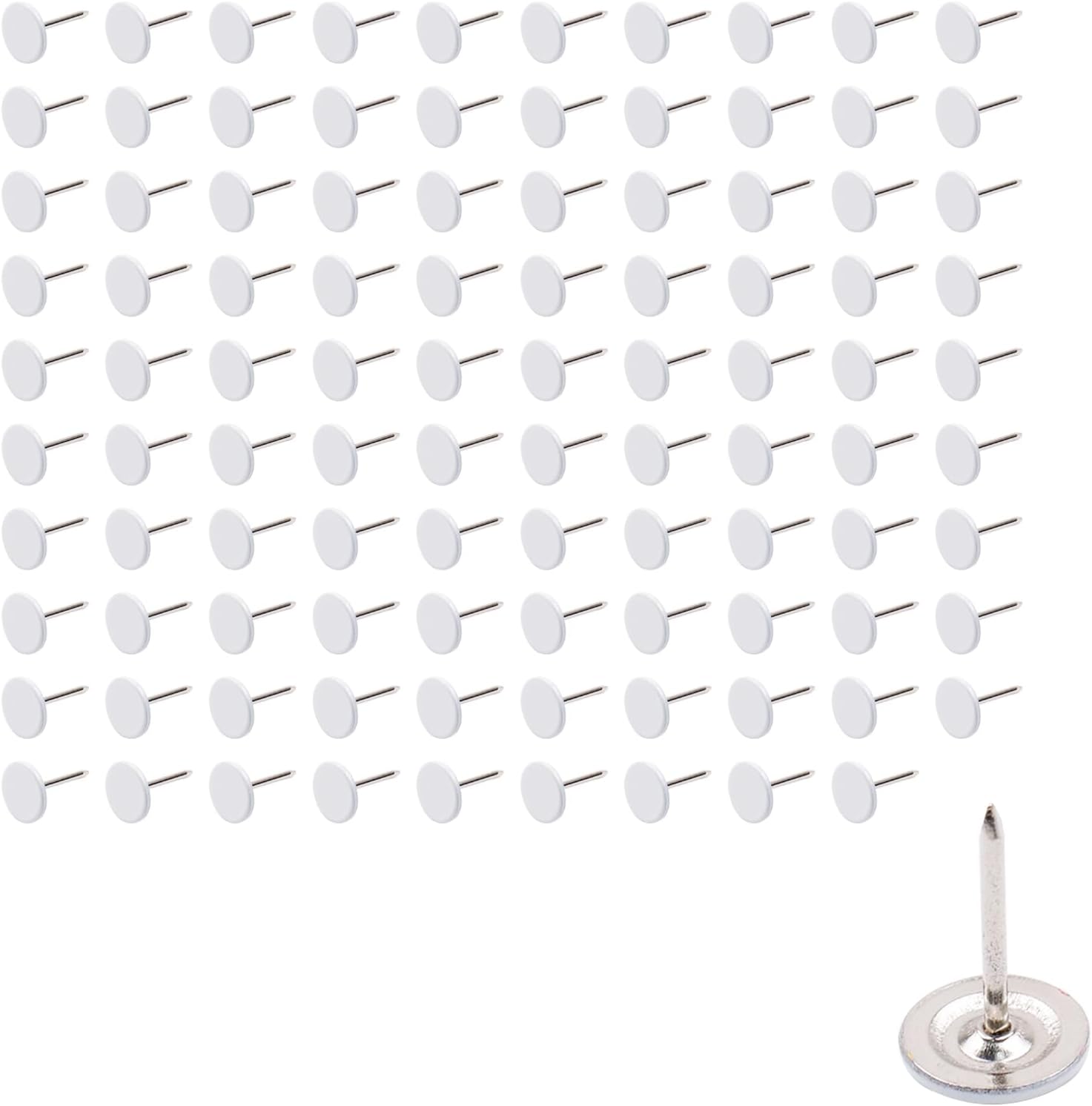 100Pcs Flat Head Upholstery Tacks Home Furniture Decor Tacks Upholstery Nails Flat Push Pins Flats Thumb Tacks White (11mmx17mm)