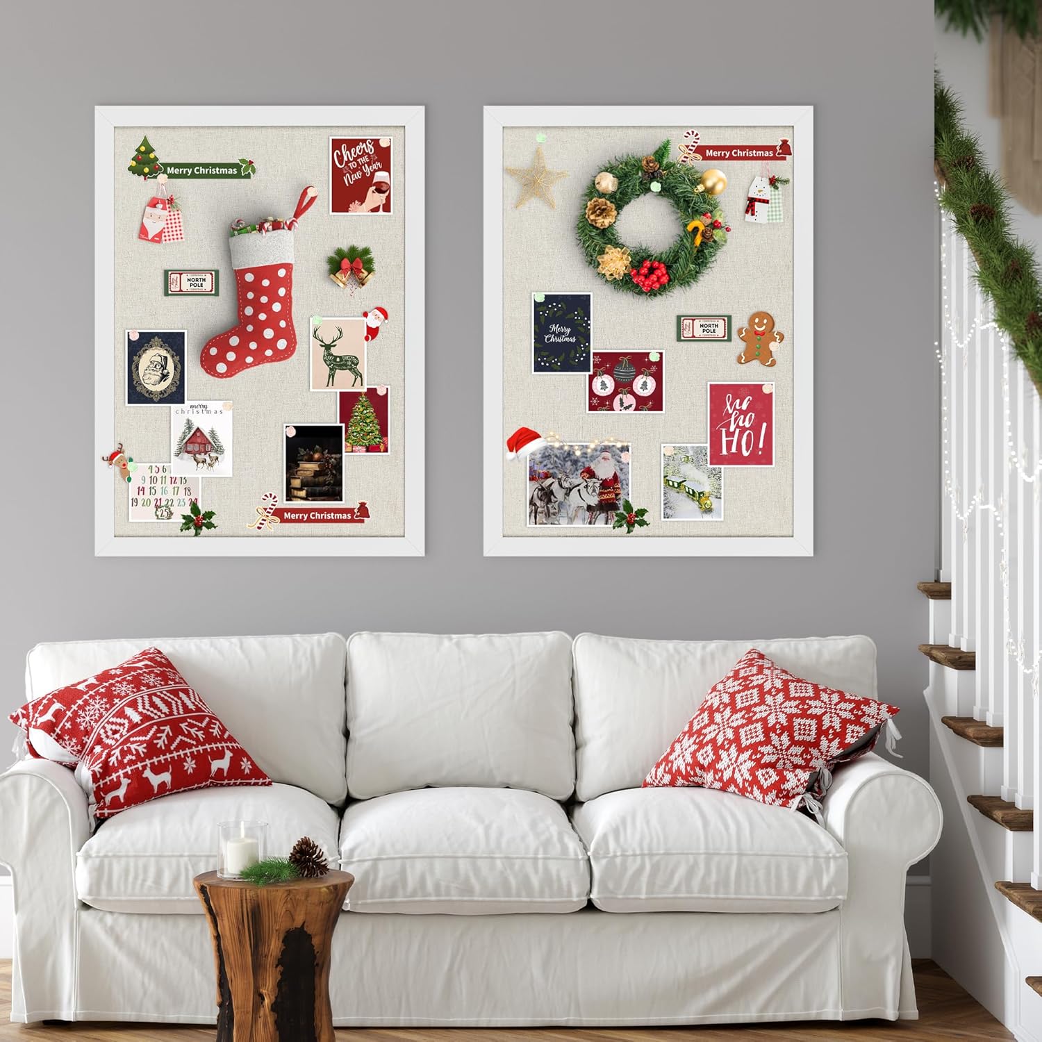 Cork Board Bulletin Board 18" x 24", 2-Pack Large Linen Corkboards with Frame for Walls, Cute Picture Display Pin Board Vision Board for Room School Office Bedroom 40 Pushpins Vintage White