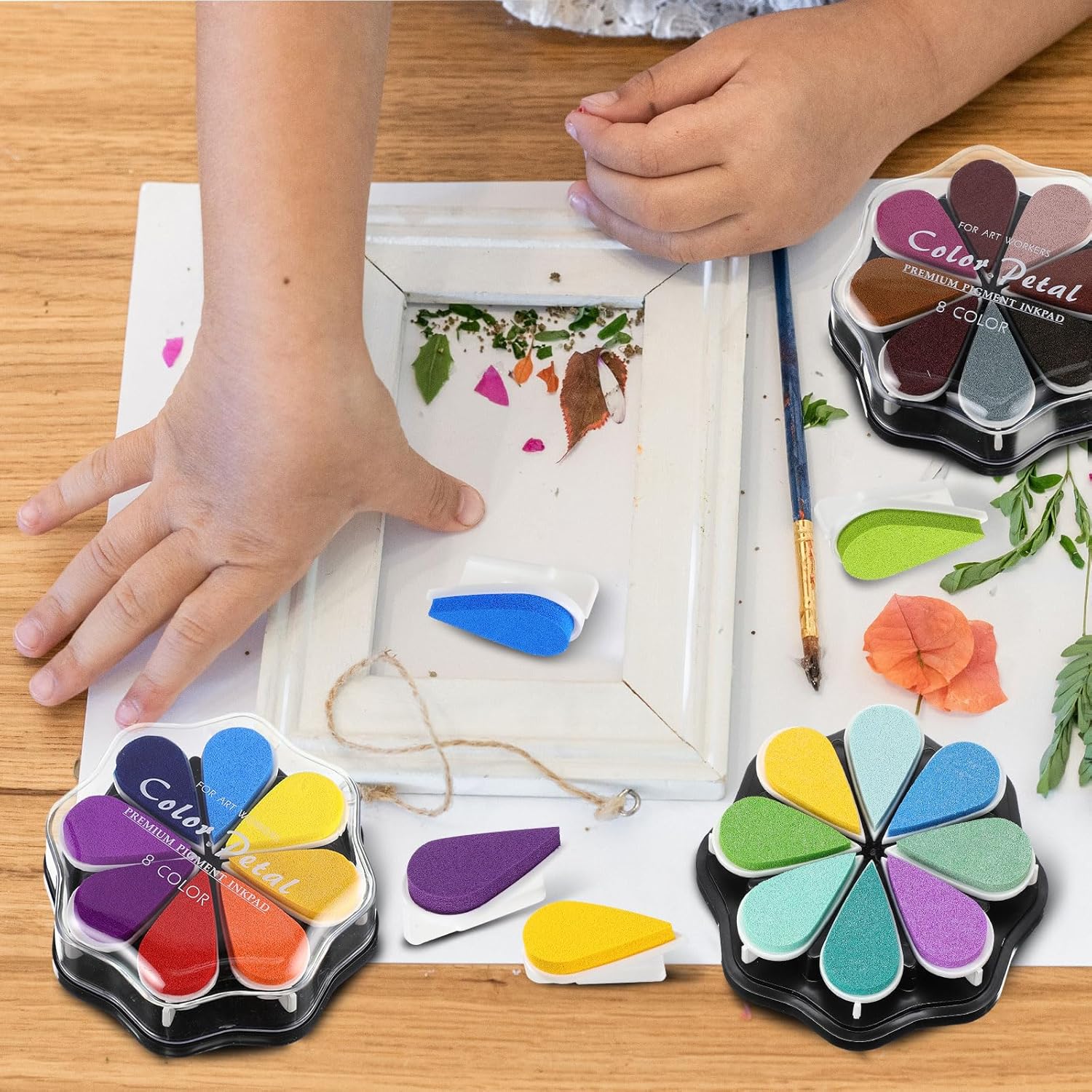 - Extend Your Color Palette with the 12 Pack: you will get 12 packs of petal washable ink pads, 8 colors for each pack, 96 colors in total; Each color can be applied alone, the order can be changed freely, and can be mixed with other colors to obtain a new color, which is sure to make your projects pop; Each piece is designed in a cute waterdrop shape