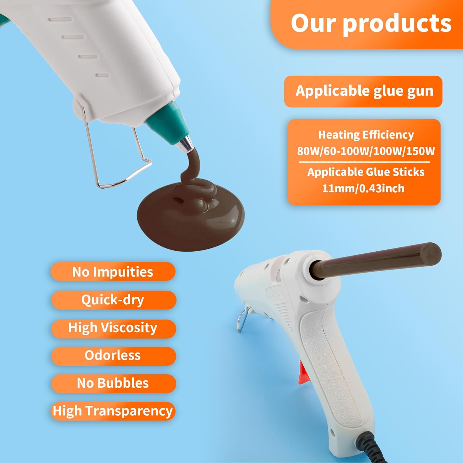 - 【Value Pack】52 pcs brown hot glue Sticks Full Size, 11mm/0.43 inch diameter and 200mm/8 inch Length, Long hot glue sticks smooth operation, No need to change glue sticks Frequently, for variety holiday decorations, crafts, arts creation gluing projects and most repair use