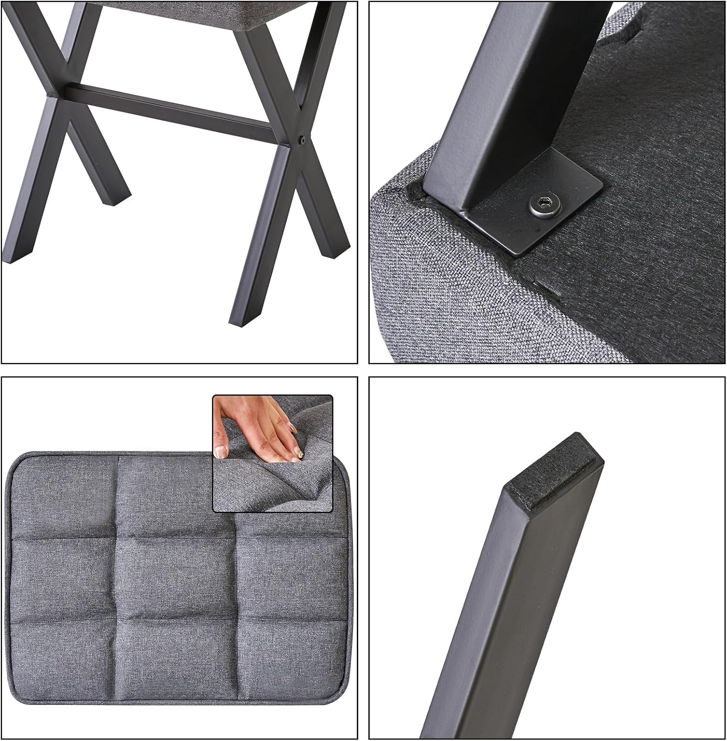 - High quality: This stool comes in two options: linen and synthetic leather, paired with black X-shaped metal stool legs to ensure durability and enhance product aesthetics.