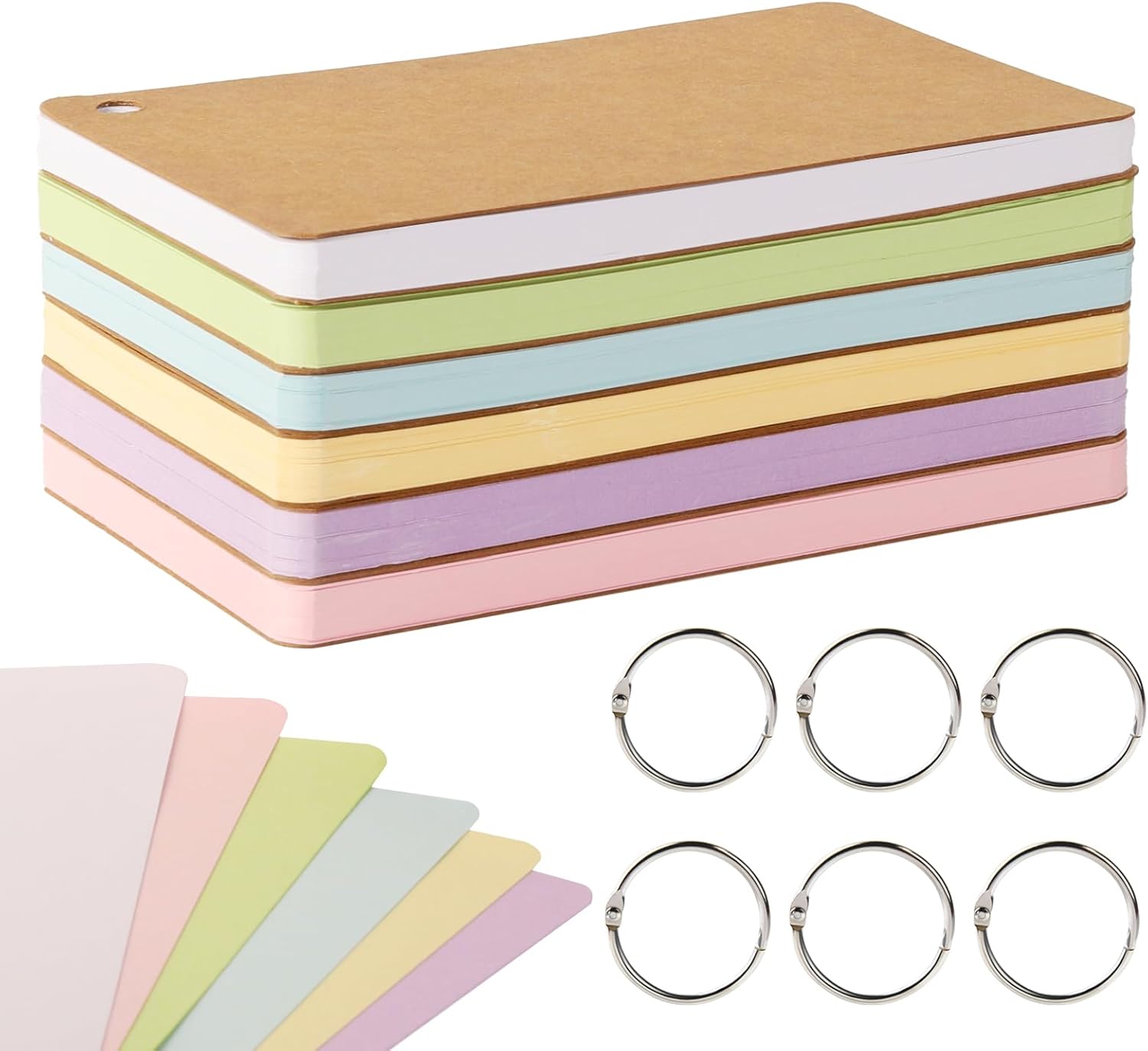 6 Pack Blank Index Cards 4 x 6 Inches, 360 PCS Colored Blank Index Flashcards Blank Flash Cards with Rings, Note Cards Punched for Study, Office and Home
