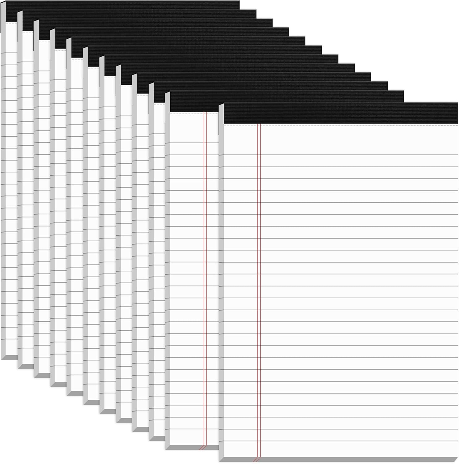 12 Pack Note Pads 5x8, Small Legal Pads 5x8 White Writing Paper for Work, Mini Notepads College Ruled Paper with Sturdy Back 25 Lines, Perforated Legal Note Pad 5" x 8", 30 Sheets Per