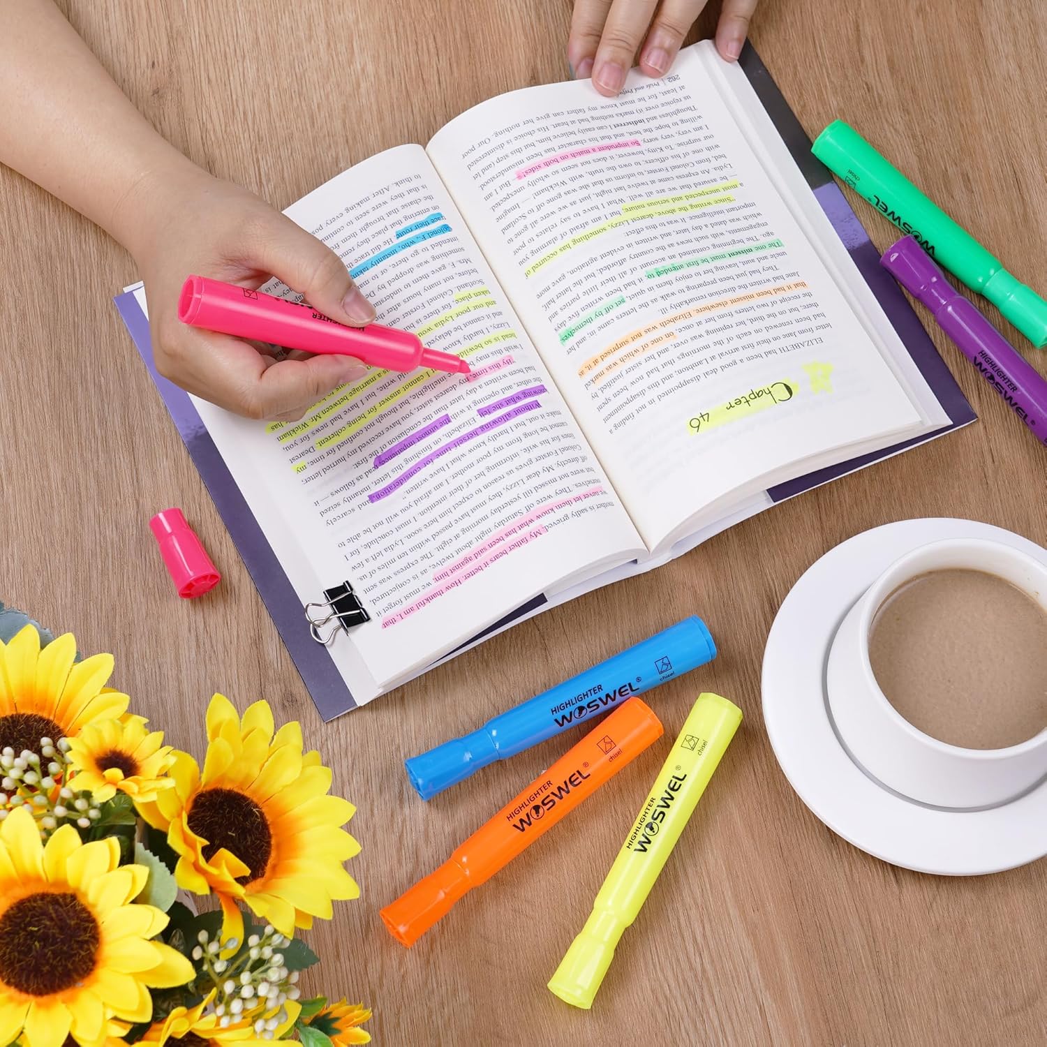 Highlighters Bulk, 24 Pack Tank Style Highlighters Assorted Fluorescent Colors Set, 6 Bright Colors Chisel Tip Highlighter Markers for Kid and Adult Coloring, Highlighting as School Supplies