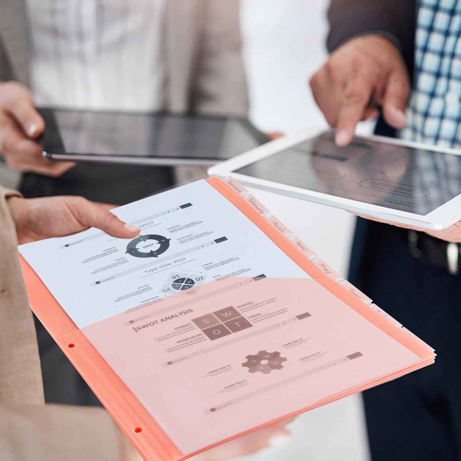 - 【Translucent Front Pocket】Each plastic dividers features a front pocket, are the perfect way to store loose papers in your 3-ring binder divider, and the semitransparent design also offer clear and easy browsing.