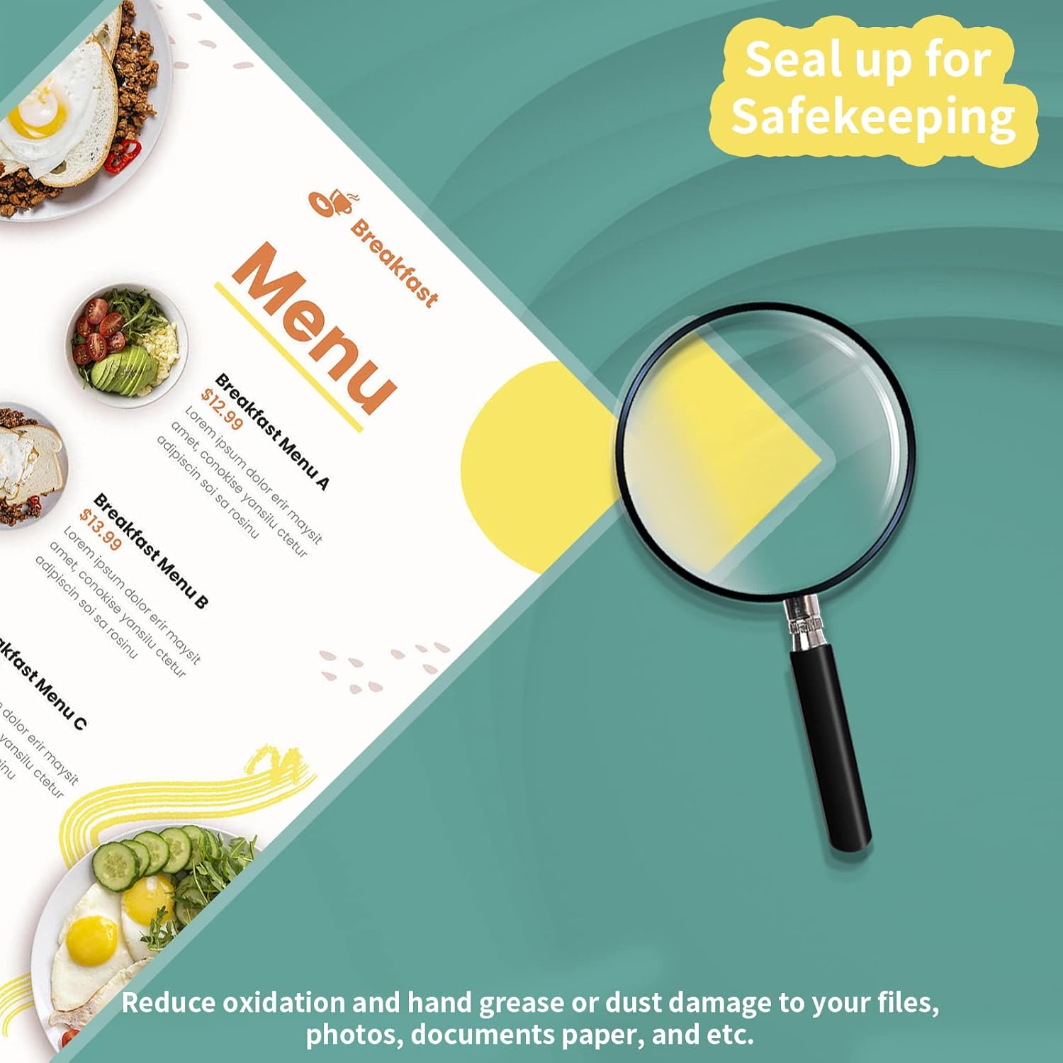 - ๐SEAL UP FOR SAFEKEEPING: Laminating sheets is made of high-quality PET film + EVA adhesive layer, strong adhesion, flat and not easy to generate air bubbles, and can be stored for a long time. Laminating paper can reduce damage to documents, photos, paper, etc. caused by hand grease or dust, and oxidation loss.