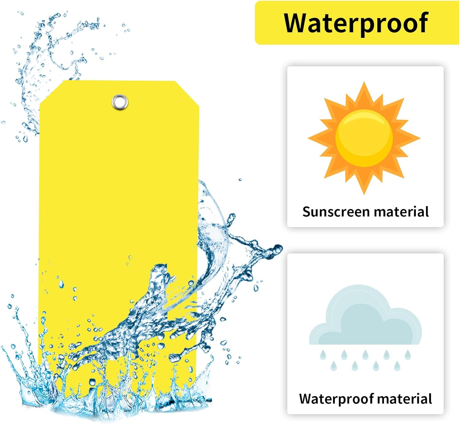 - Tear Resistant: The Plastic Tags are durable and thick enough not to bend easily. Our Yellow shipping labels are tear-resistant and built to withstand harsh weather, splashing water, and rough handling.