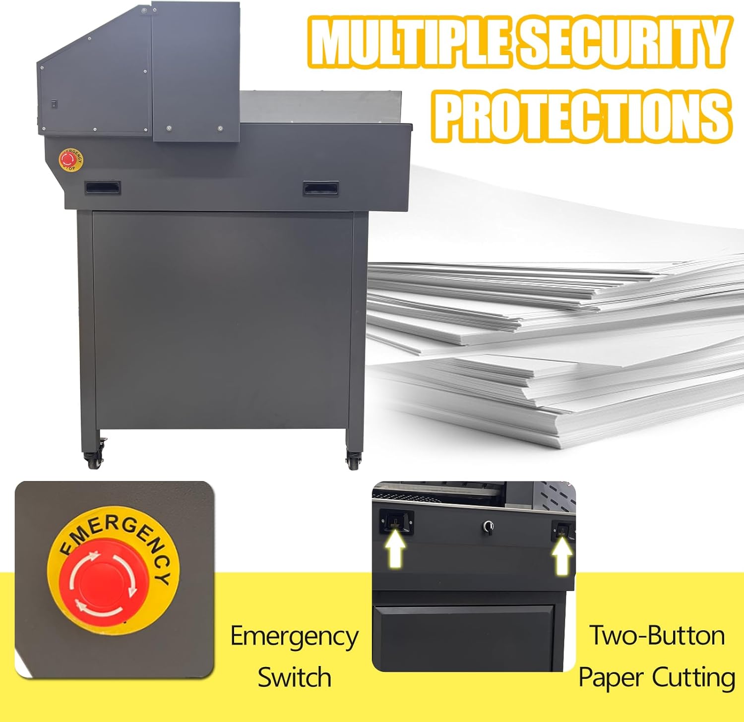 - Wide Application: The cabinet at the bottom of the electric paper cutter is convenient for storing documents and information. It is ideal for small and medium sized printing enterprise, photocopies, offices and cut papers, books, pictures.