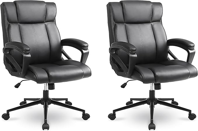 Executive Office Chair, Ergonomic Home Office Desk Chair with Wheels, Thicken Armrest and Lumbar Support, Upholstered Leather Mid-Back Computer Gaming Chair (Black, Set of 2)