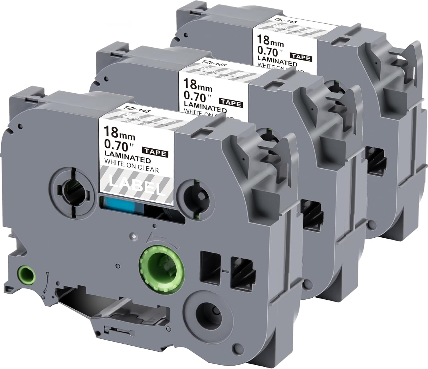 - Quantity/Size/Colour: TZe145 TZ-145 TZ145 TZe-145 Label Tape comes in packs of 3, is 0.7" (18mm) wide and 26.2 ft (8m) long and is white on clear
