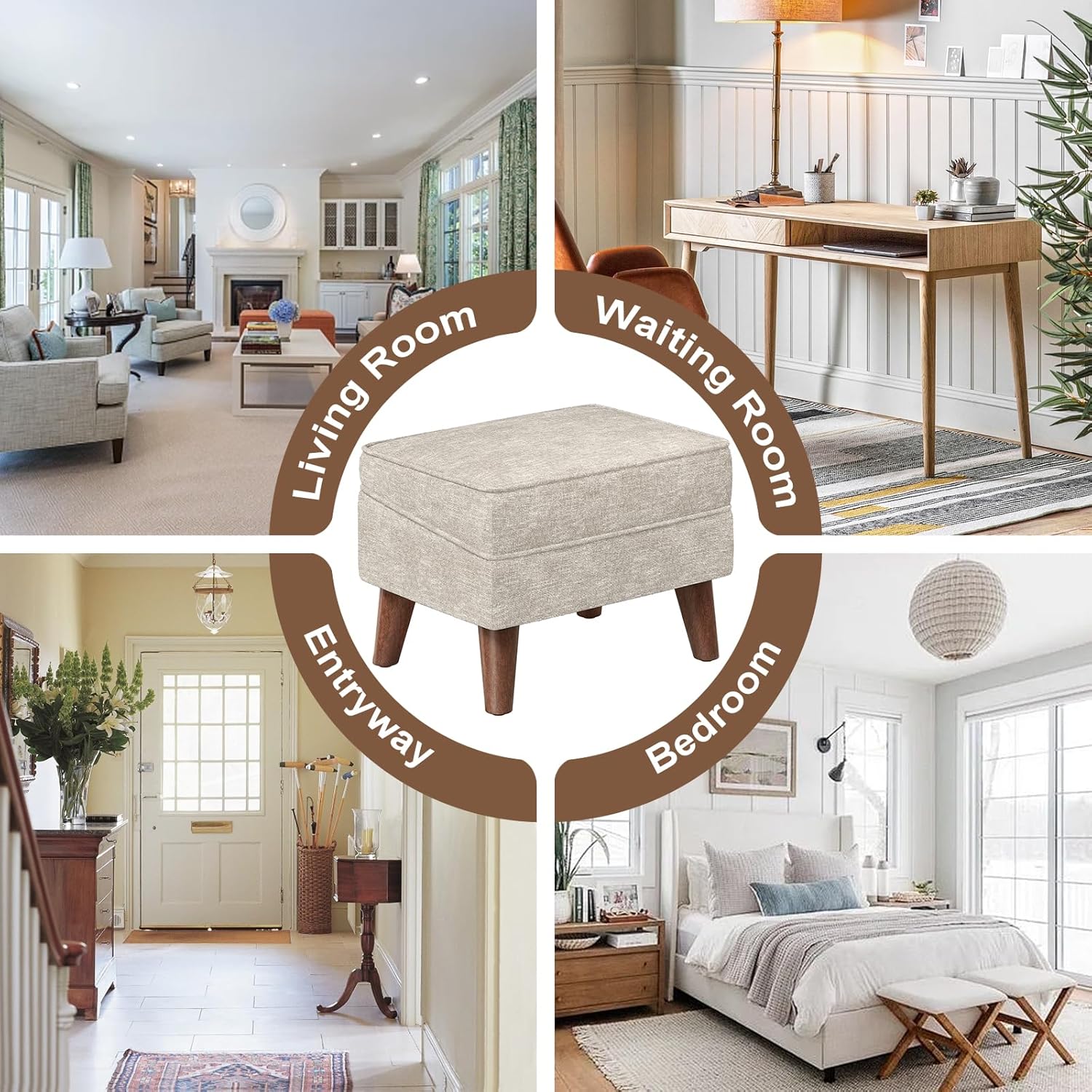 - 【Decorative Ottoman for Occasions】 High resilience foam wrapped in textured natural linen, modern style and simple appearance has a touch of casual. Wood legs with foot pads is quiet when moving, and can avoid leaving scratches on floor. Foot stool choices strive to stand out in any various occasion, such as bedroom, living room, study, lounge, balcony, dorm, entryway, hallway, etc.
