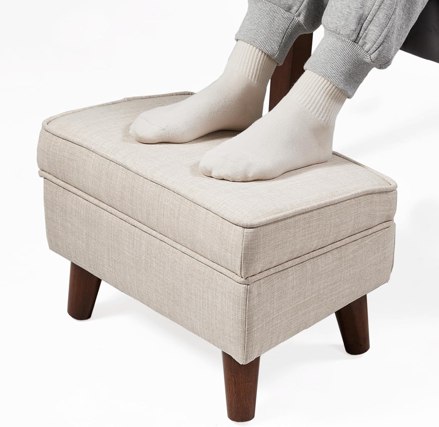Ottoman Foot Rest, Small Footstool Ottoman with Storage, Modern Foot Stool with Adjustable Lid and Sturdy Wood Legs for Living Room, Bedroom, Couch, Enterway (Beige)