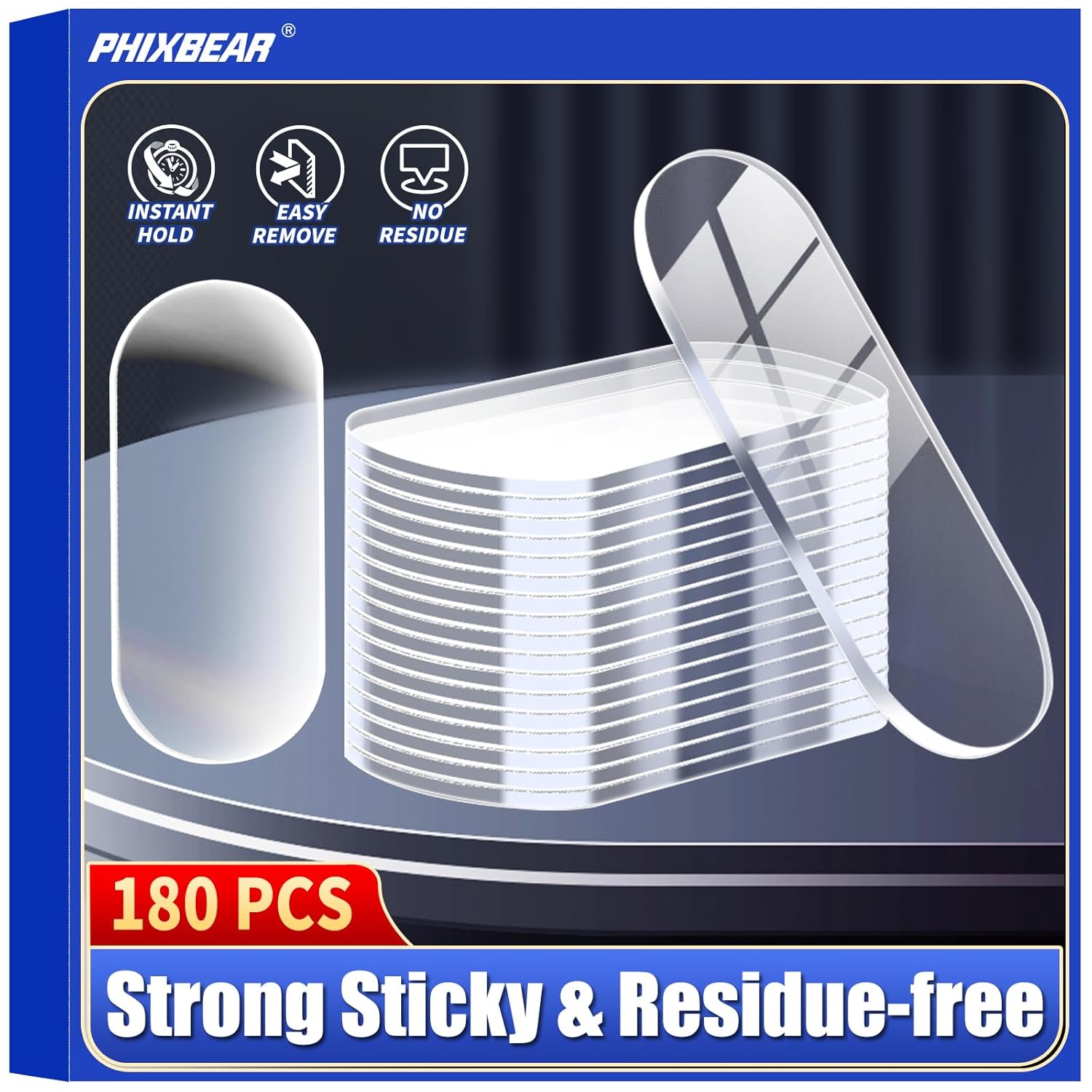 - 【Easy to Use】Instantly adhesive transparent removable nano double-sided adhesive pads, no mess, no tools required, no need to wait for glue to dry for a long time. Just peel off from the adhesive sheet and stick it wherever you want. You can completely get rid of the mess of traditional liquid glue or tape. Faster, safer, and cleaner.