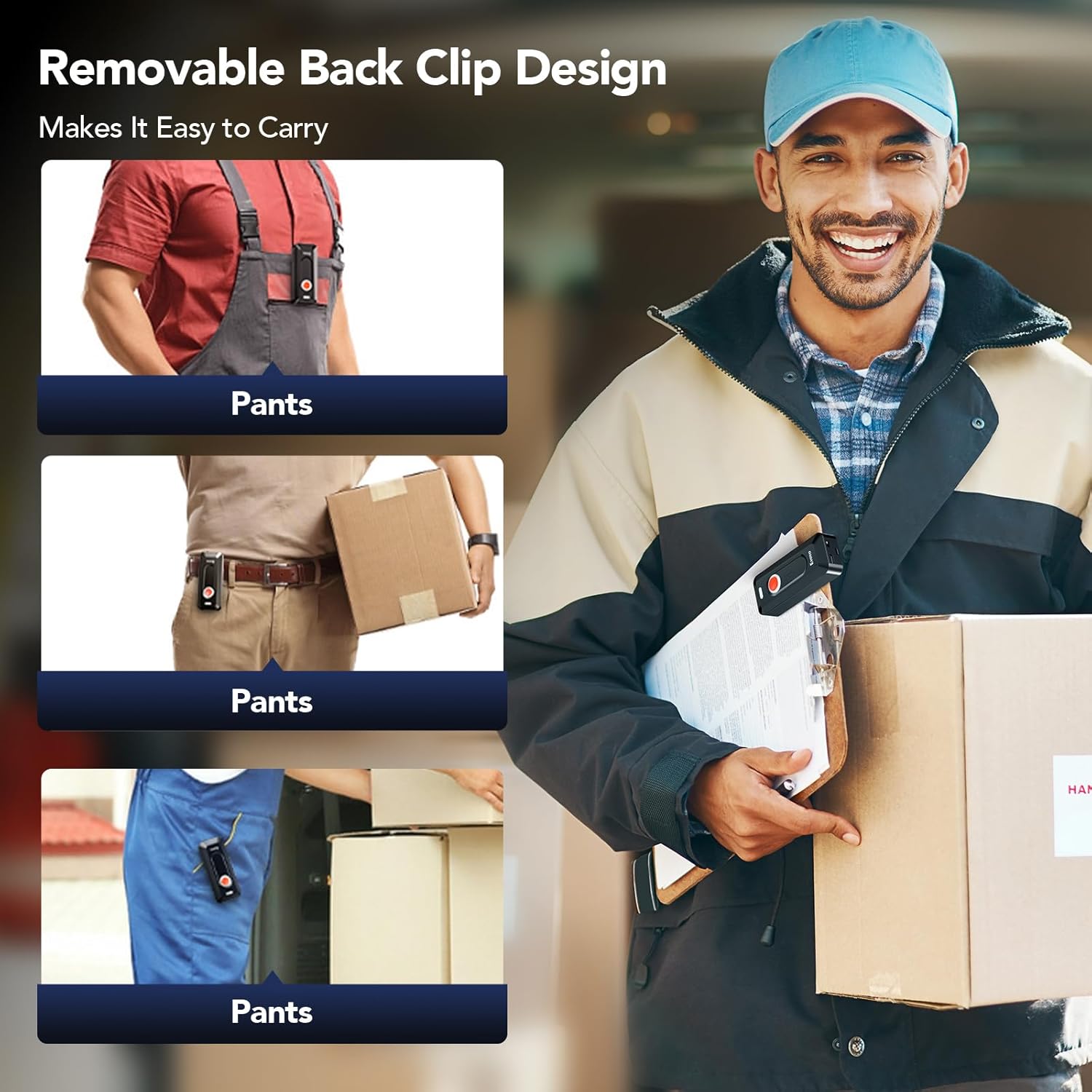 - Clip on-the-go, Easy to Carry: Eyoyo Portable Mini barcode scanner with clip can be clipped on the backpack, pocket, chest, or other positions without the need for a handheld. With a simple clip, the wireless scanner can be easily carried anywhere, freeing your hands and preventing loss, making it the perfect bar code reader for in the warehouse, in the supermarkets, or anywhere else you need scanning. When you need it, just take it out, press the button, and make the barcode secret pop