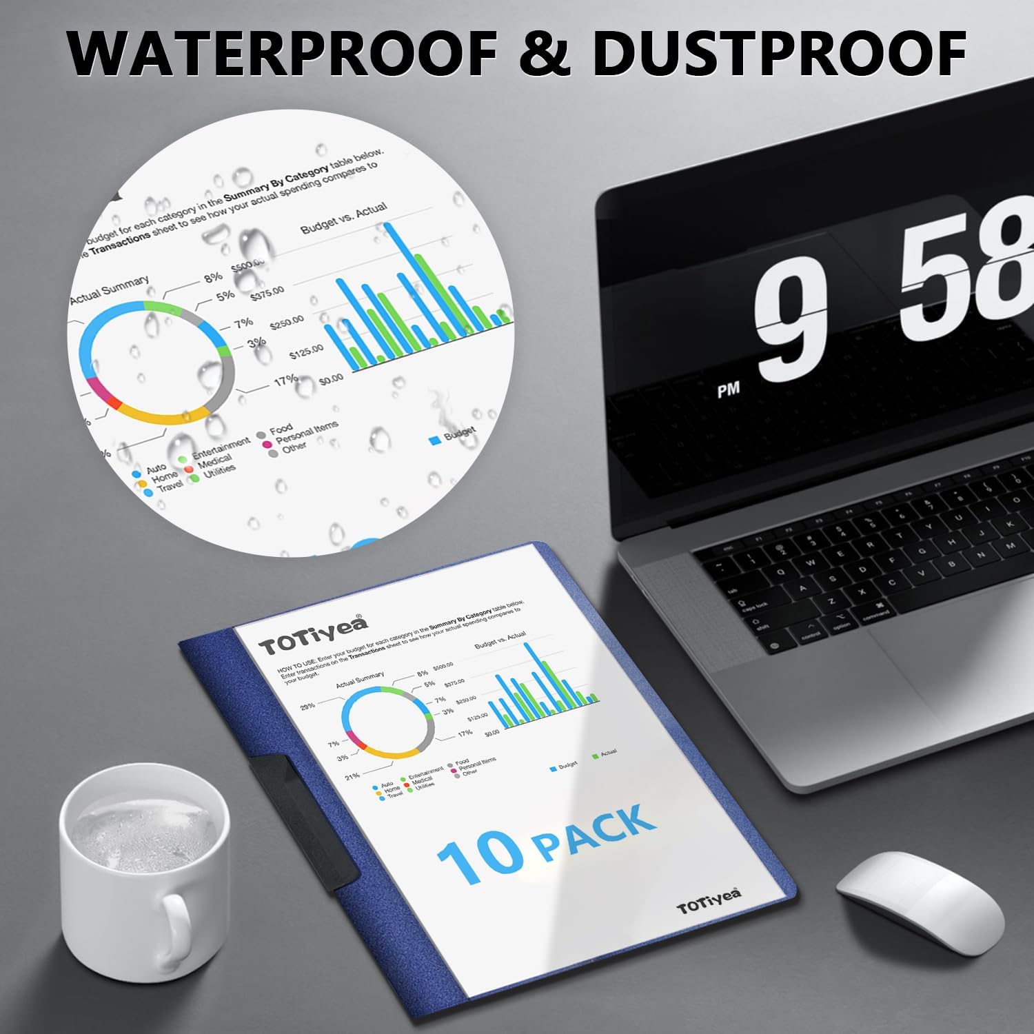 - Premium Clear & dent resistant folders: This file folder made with high-quality plastic. Crafted with 200-micron (8mil) optical-grade polypropylene front cover delivering crystal clarity – instantly reveal document titles for quick access. The 400-micron (16mil) reinforced back features a non-slip suede-textured finish that resists scratches, tears, and bending while providing protection.