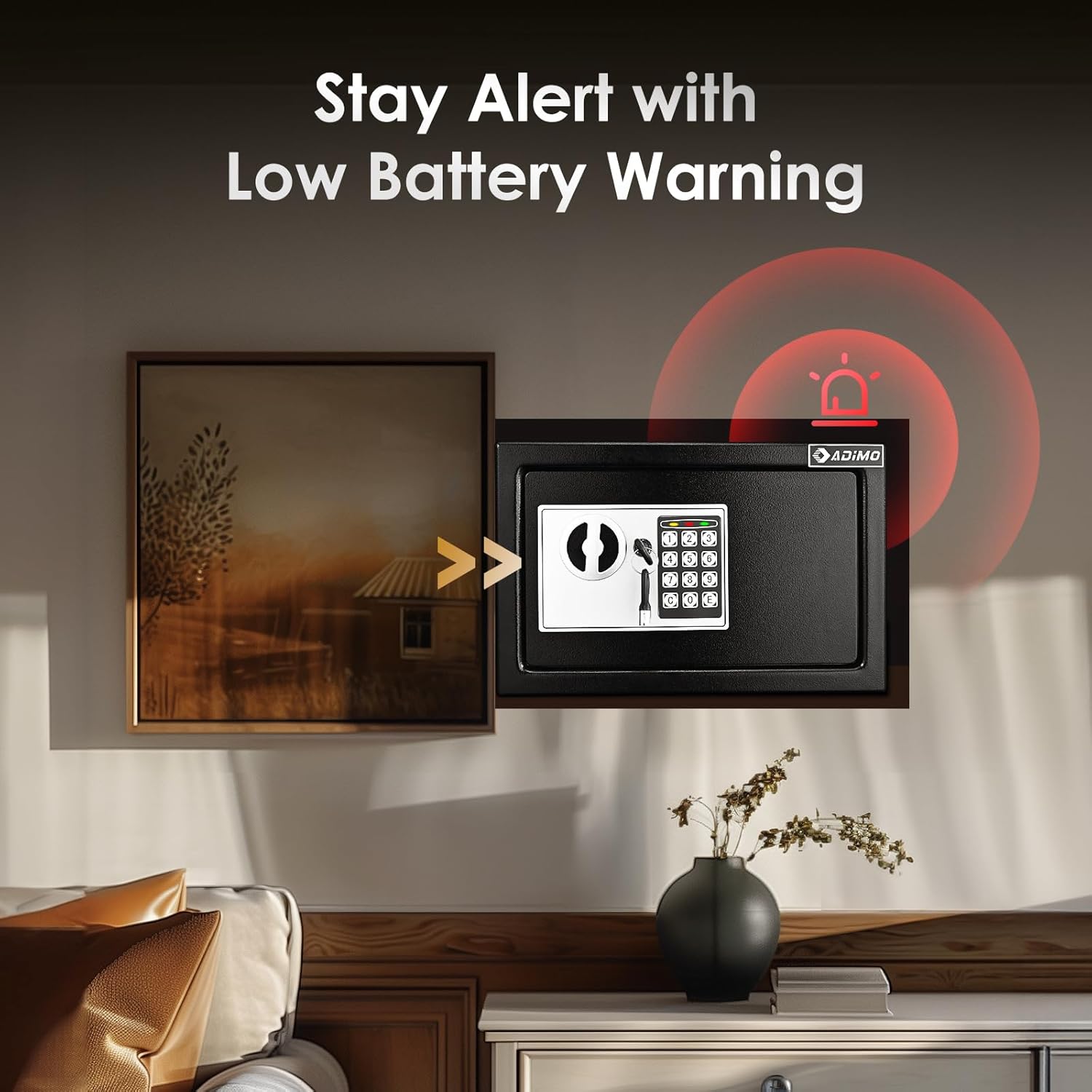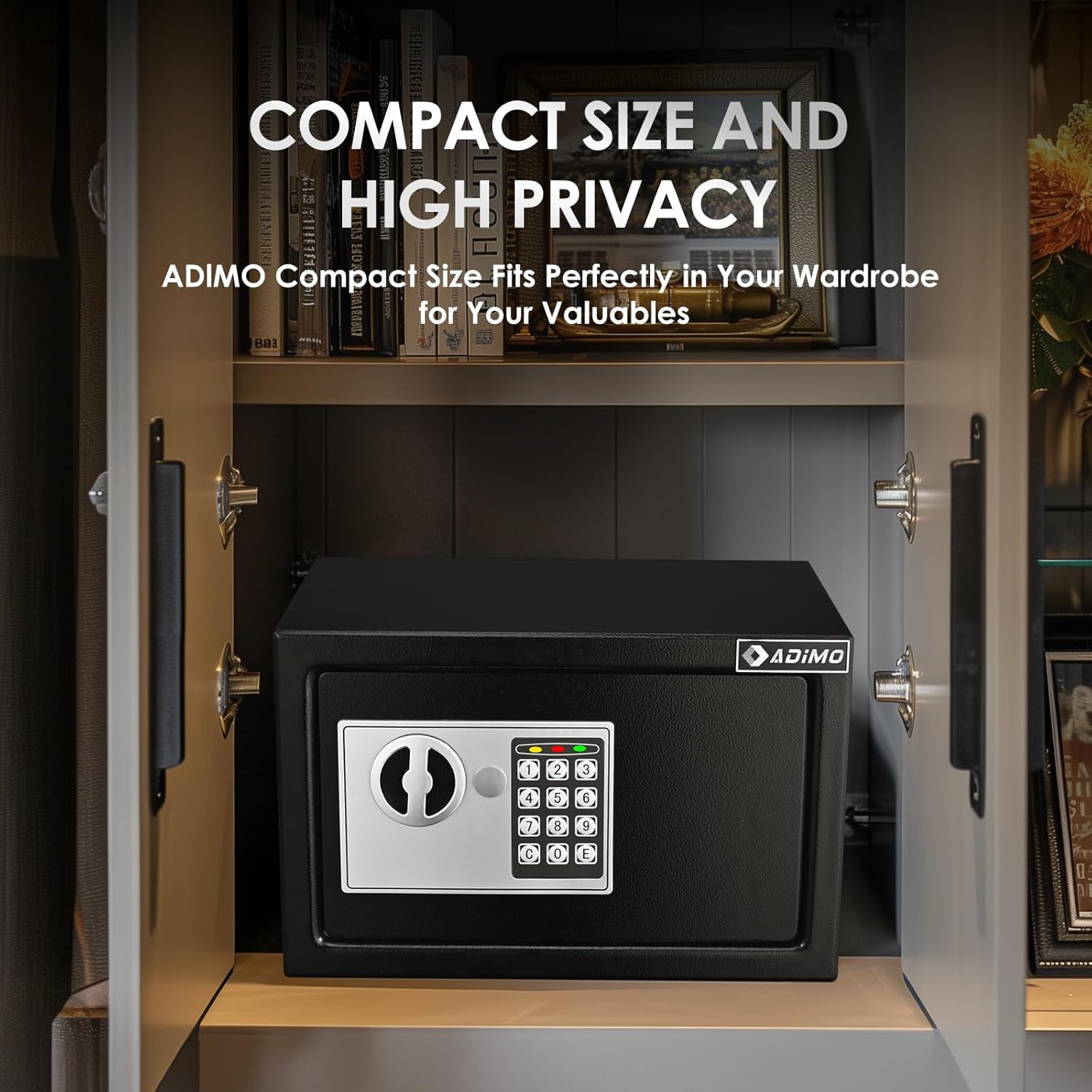 - Versatile Application: Designed with flexibility in mind, this digital safe includes mounting bolts so you can securely install it in a wall, floor, or cabinet. It can also function as a portable lockbox. Suitable for a wide range of environments—whether at home, in the office, or in a hotel—this safe provides reliable protection wherever you need it. Las cajas fuertes para guardar dinero de ADIMO están fabricadas con materiales de alta calidad y son ampliamente apreciadas por las personas.