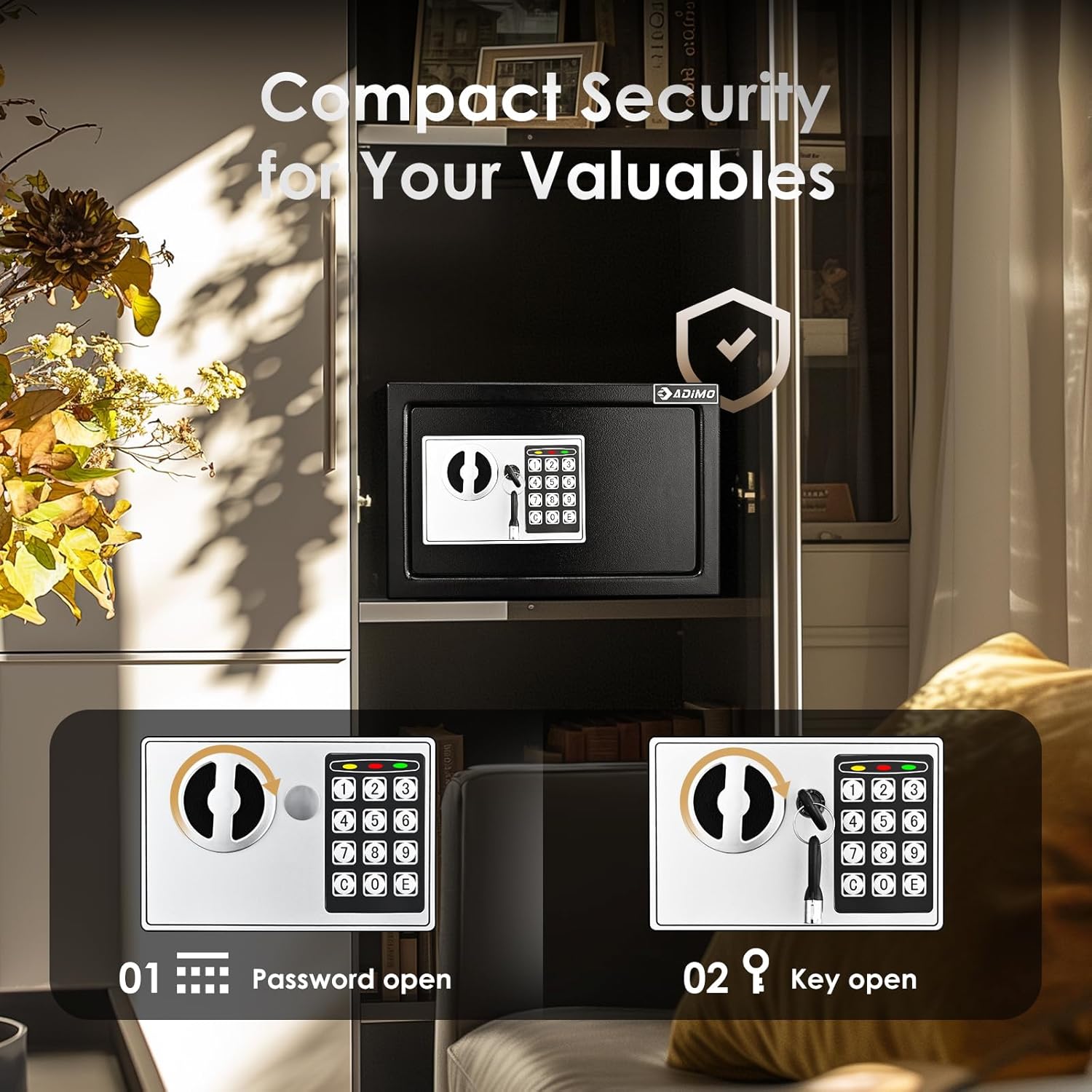 ADIMO Safe Box for College Dorm Room, Money Box with Fireproof Waterproof Bag, Keys & Pass Code & Wall Mount Kits, 0.5 Cubic Feet Hidden Home Safe for Jewelry, Money, and Documents, Home Office, Dorm