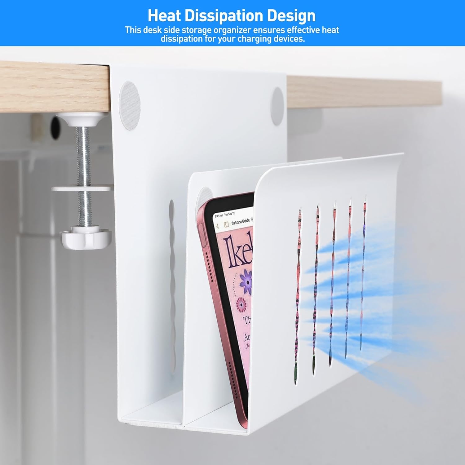 - 【High Quality Material】This metal side hanging desk organizer is crafted from high quality iron. This sturdy under-desk laptop holder supports up to 22lbs and can be paired with magnetic cable holders, USB hubs, and other devices.