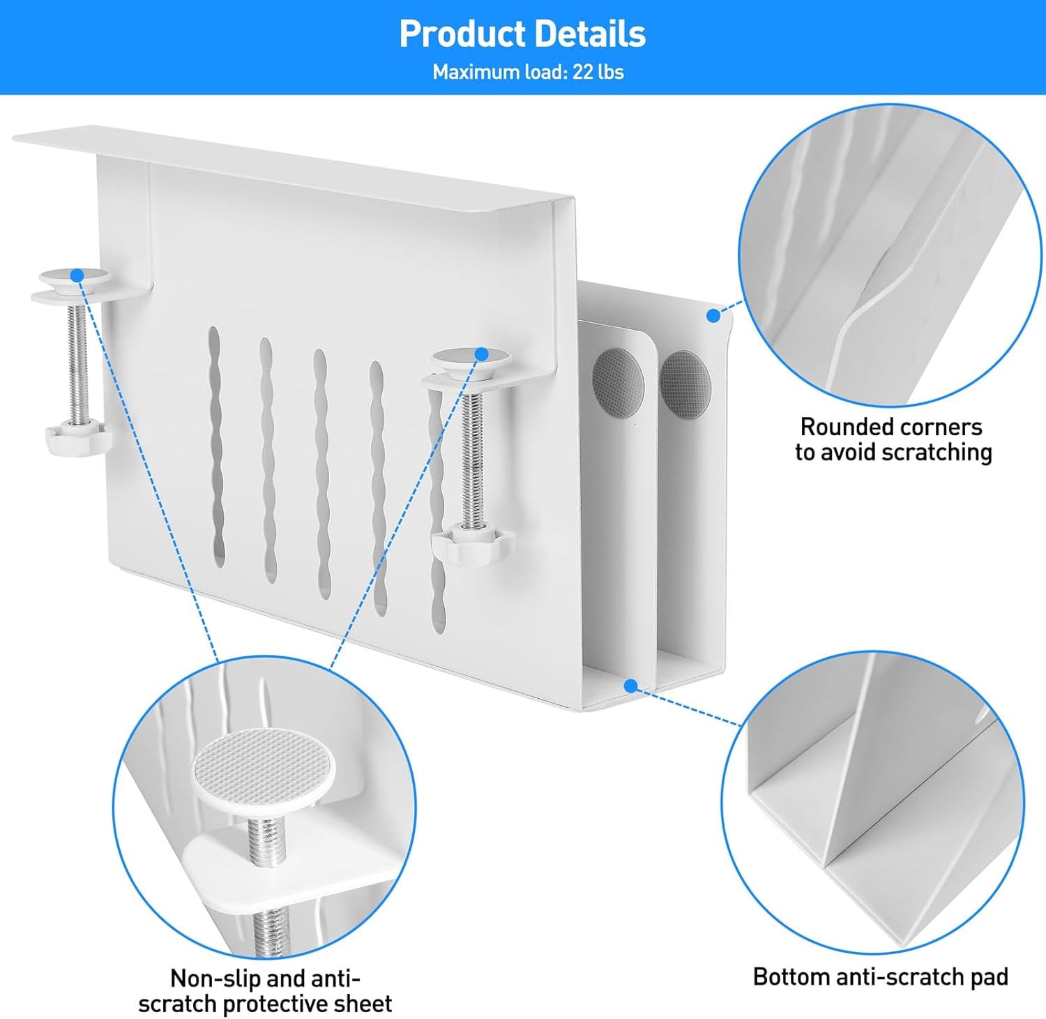 - 【Non-Slip & Anti-Scratch Sheets】On the inner surface and the bottom of our laptop tray and both ends of the clamp feature non-slip sheets, which can help fix the laptop on the desk side storage without scratching the laptop, tablet or other device.