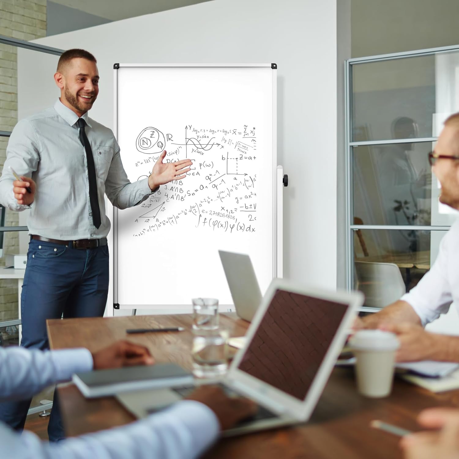 - Robust and Mobile: Built with a sturdy aluminum frame and four steel casters, our whiteboard ensures smooth 360° rotation and easy mobility. Engage the brakes for added stability during use.