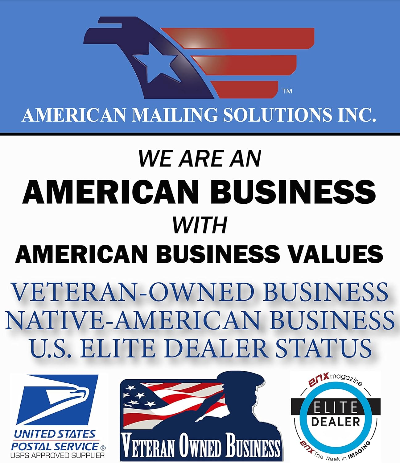 - AMERICAN MAILING SOLUTIONS INC. uses our very own products for service and supply to our customers.