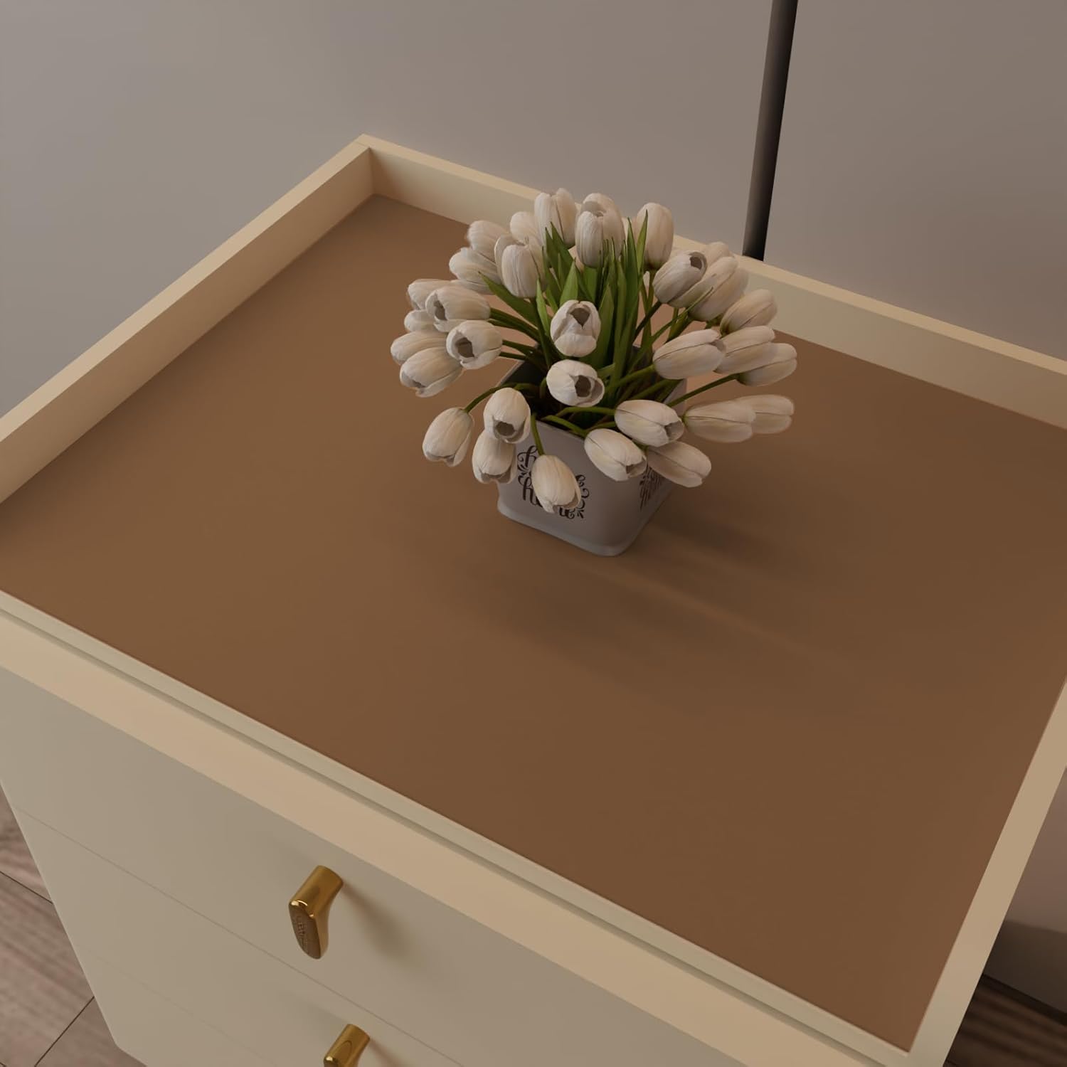 - Safe Material:The Nightstand Cover is made of faux leather(Non genuine leather)material,Non toxic odorless.The opacity of the product can effectively conceal flaws on the surface of furniture and tabletops.The product has a thickness of 1.8mm, with a soft and durable texture that can effectively cushion the collision between tableware and tabletop.it shields furniture from scratches, scuffs, stains, spills, and damage.