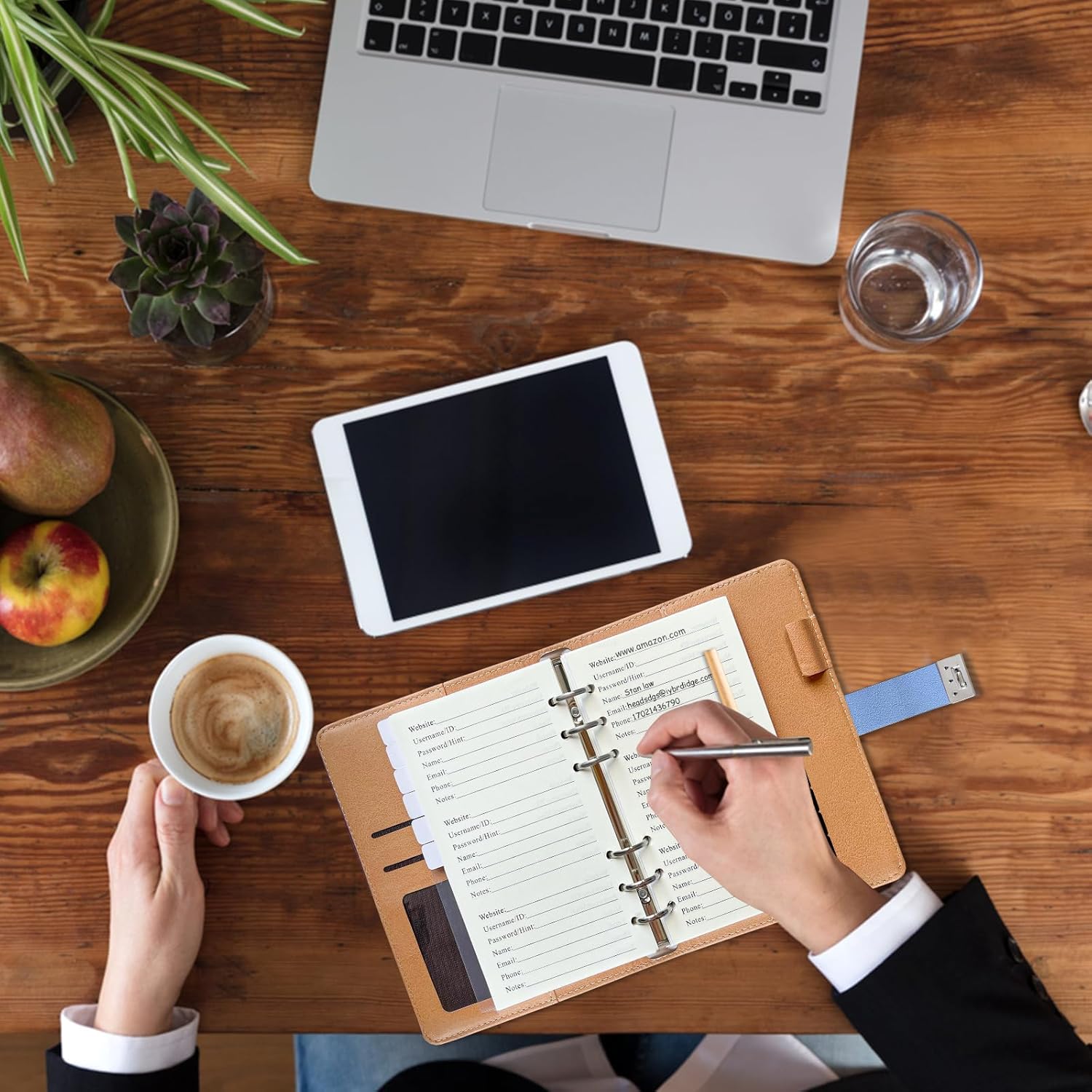 - Value Pack: Our password keeper refill comes with 216 pages 80gsm paper and 12 durable laminated dividers with alphabetical tabs for password organizer, total allows 576 records of website, username/ID, password/hint, name, phone, email, notes etc., 48 records of license number and purchase date., 8 lined pages for notes taking, each 4 pages for email setting, network setting and wireless setting, each 1 page for emergency information and personal info.,1 PVC protect film.
