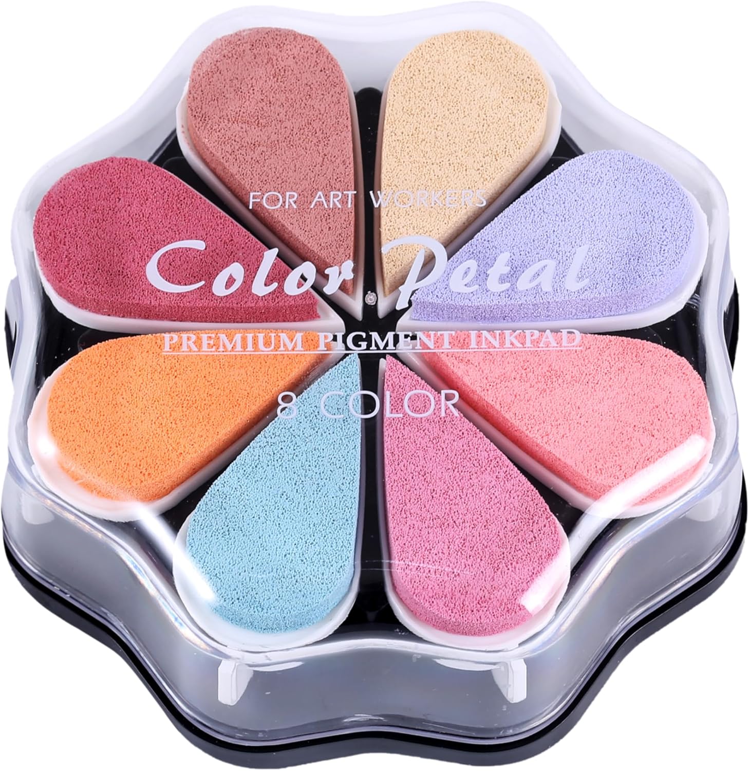 YPSelected 8 Assorted Multi Colours Waterdrop Shaped Craft Rubber Stamps Petal Ink Pads for Paper Wood Fabric (Set 1027)