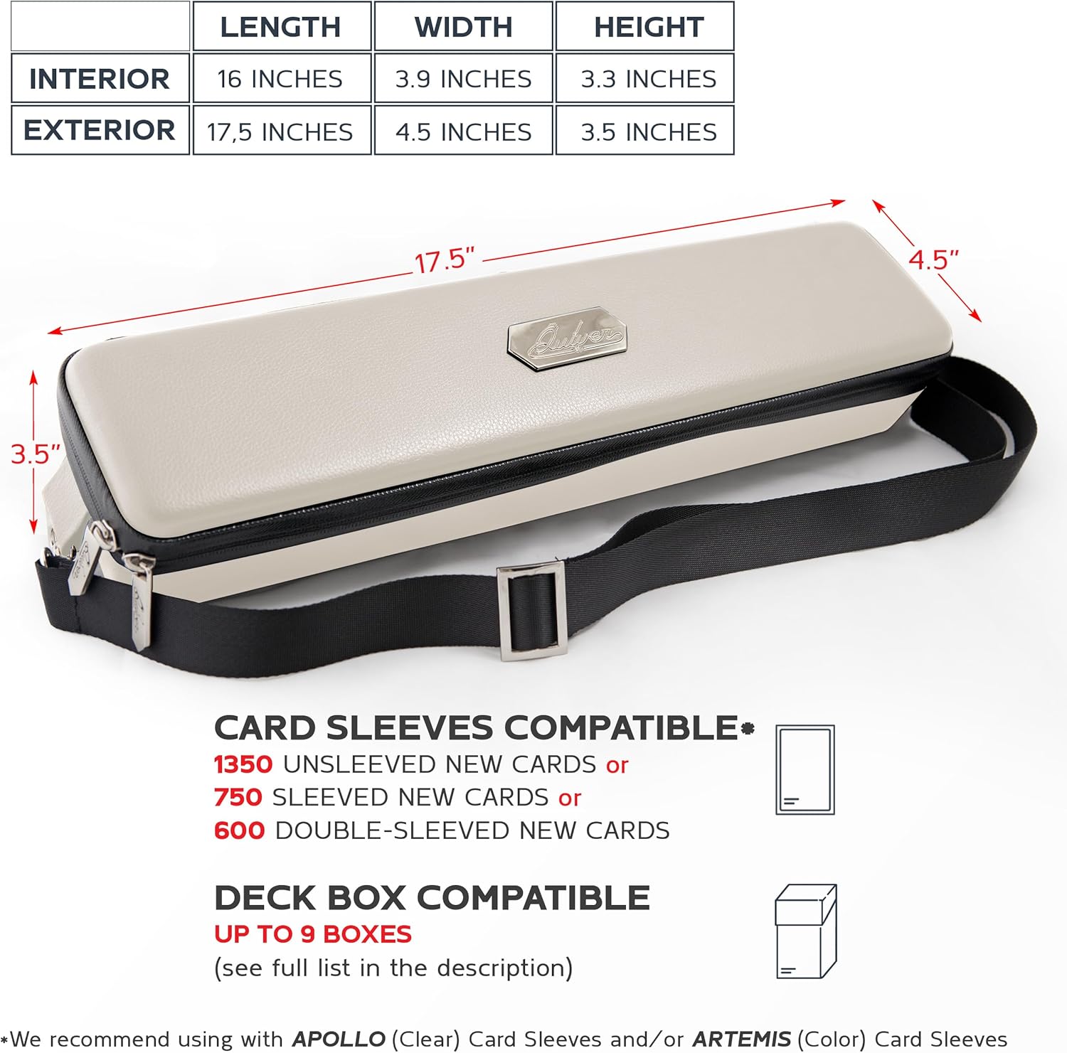 - Ideal Pairing with Quiver Time Orion Playmat Tubes: For a seamless gaming experience, pair the Ivory Quiver Trading Card Carrying Case with the Orion playmat tube. This combo ensures that your cards and playmat travel securely together, offering convenience, protection, and style for every game session. Additionally, it is fully compatible with all Quiver Time products, including Standard Deck Blocks, Apollo and Artemis Card Sleeves, and the Citadel Deck Block.