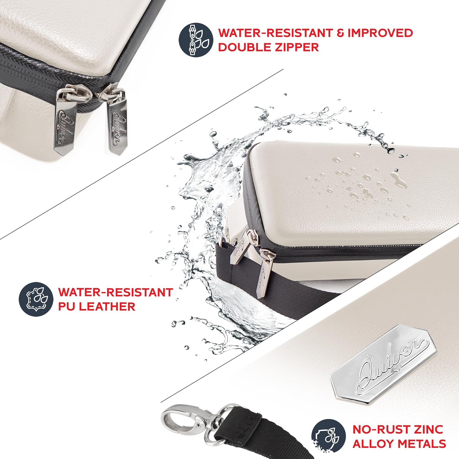 - Durable, High-Capacity Trading Card Storage: The Quiver Ivory Deck Carrying Case holds over 1350 unsleeved standard trading cards, perfect for serious and casual collectors. Equipped with 4 durable acrylic separators, 5 adjustable Velcro dividers, and 2 removable corner pads, it offers customizable organization and superior protection against wear and tear.