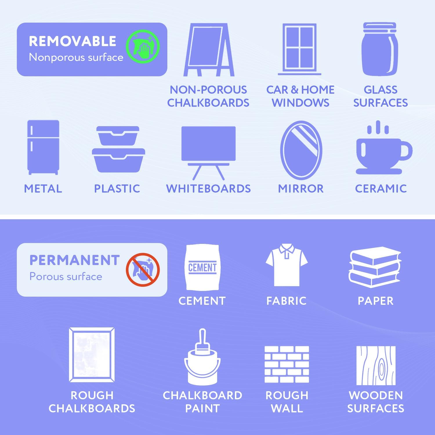 - Versatile Use: The chalk markers use the dustless, non-toxic formula is both eco-friendly and safe for home use. Whether you're a teacher, mom, student, artist, or bistro owner, these chalk markers are what you're looking for