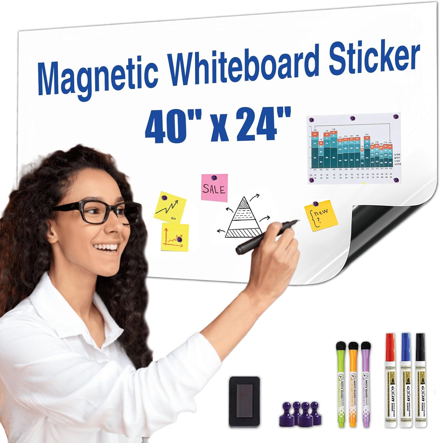 Magnetic Whiteboard Sticker - Adhesive Backing 40'' x 24'' Dry Erase Board for Wall Whiteboard Contact Paper for Office Home