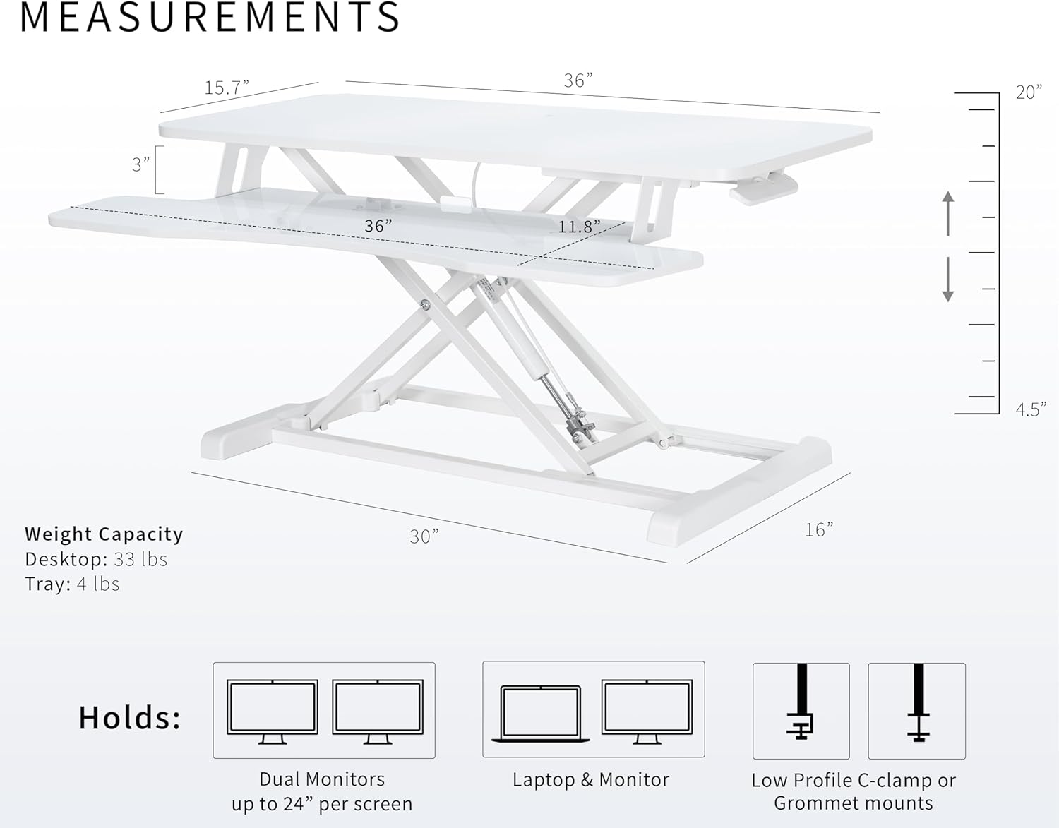 - Create Instant Active Standing: VIVO’s desk riser provides on-demand standing throughout the day for the freedom to get out of your chair and relieve muscle tension, reduce stress, and increase productivity --Patented--