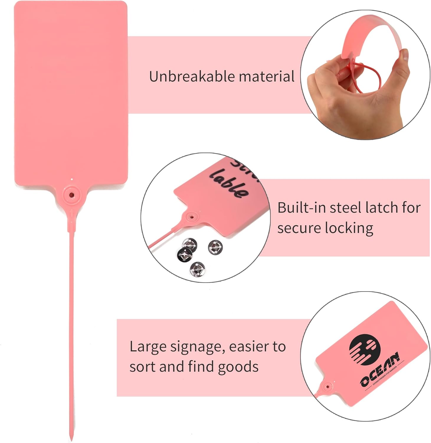 100 Plastic Tags: Big Waterproof Writable Label Ties with One Marker Pen (Pink)