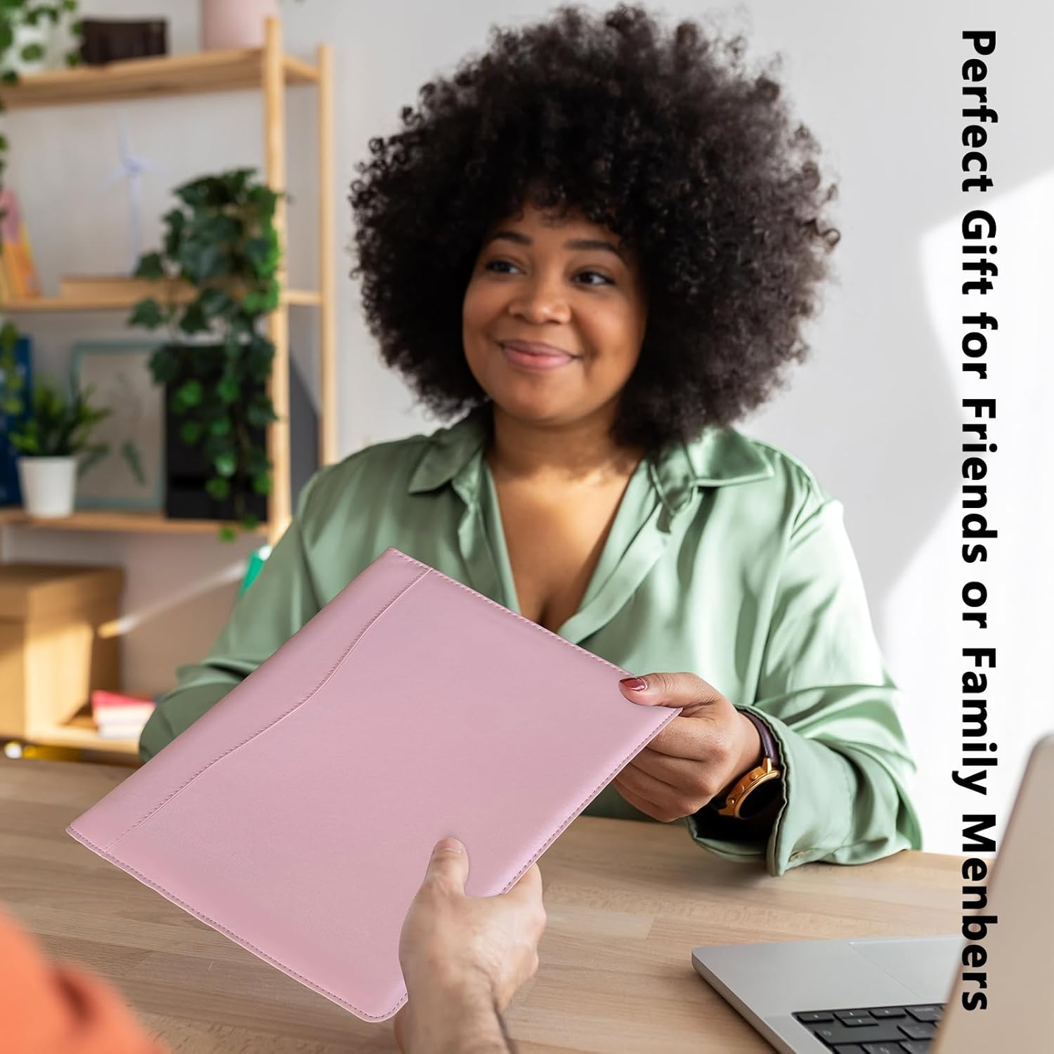 Portfolio Folder Padfolio with A4 Clipboard, PU Leather Portfolio Clipboard Business Binder Writing Clip Board Organizer for Legal Documents Business Card Men Women Pink