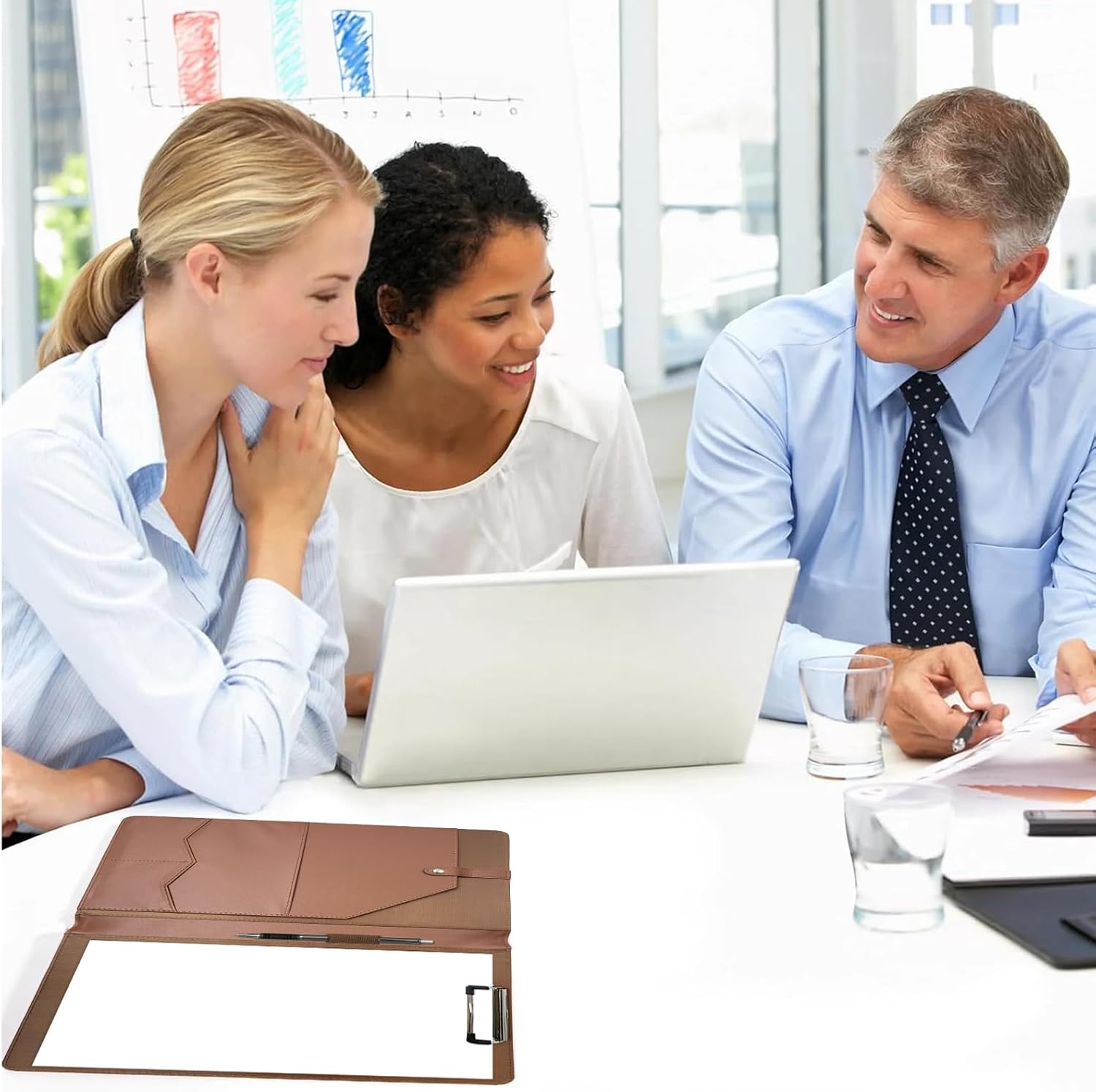 Portfolio Folder Padfolio with A4 Clipboard, PU Leather Portfolio Clipboard Business Binder Writing Clip Board Organizer for Legal Documents Business Card Men Women Brwon