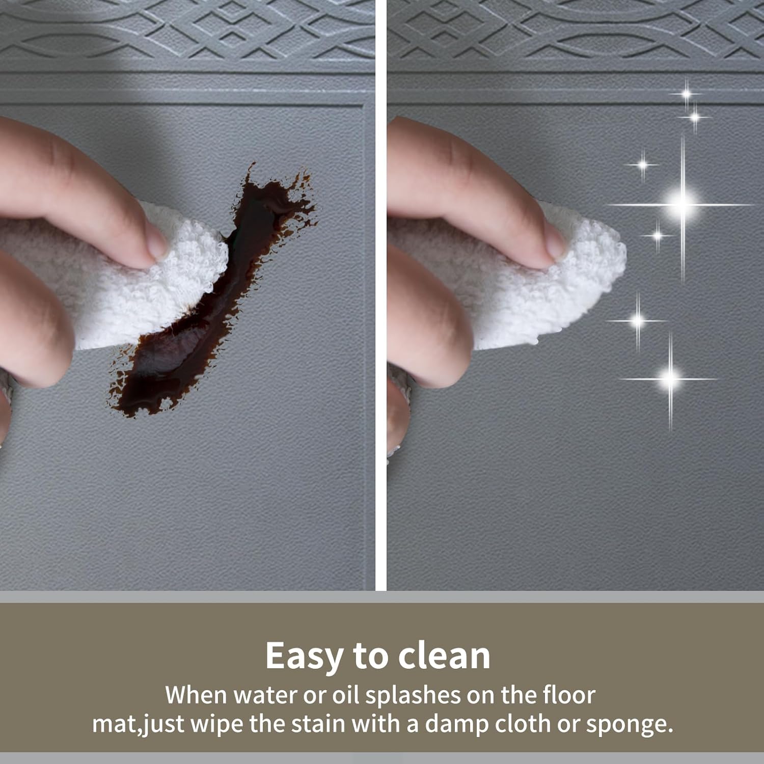 - MAXIMIZE YOUR COMFORT:Our premium 3/4'' thick anti fatigue standing mat gives support and comfort while you standing all day in kitchens, offices, garages, and laundry rooms. RELIEVE FOOT, KNEE, JOINT, and BACK PAINS by providing professional manufacturing techniques with supportive and high-density materials. If you spend a lot of time on your feet, an anti fatigue mat might be just what you need.