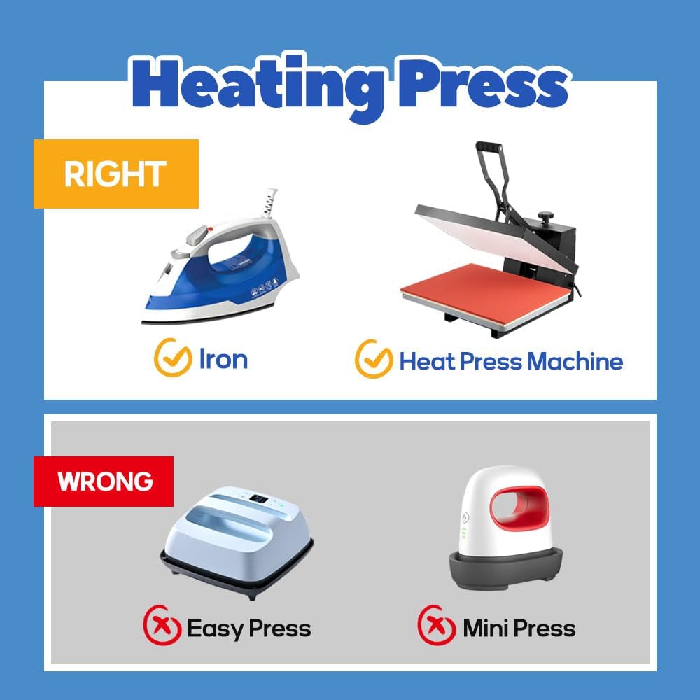 - REQUIREMENTS: This iron on paper works great with standard inkjet printers like HP, Brother and many more. It is compatible with regular INKJET INK. Sublimation ink doesnโt work. Designed to be easily cut with scissors, this printable vinyl is NOT compatible with smart cutting machines. This white transfer paper can be heat pressed by iron and heat press machine, it is NOT compatible with Easy Press or Mini Press.