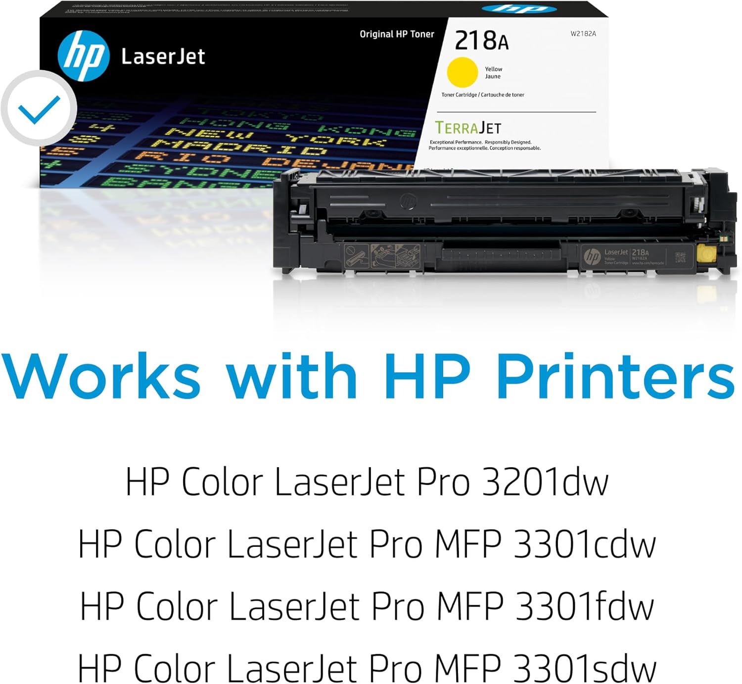 - What's in the box: 1 new HP 218A Yellow Toner Cartridge (W2182A)