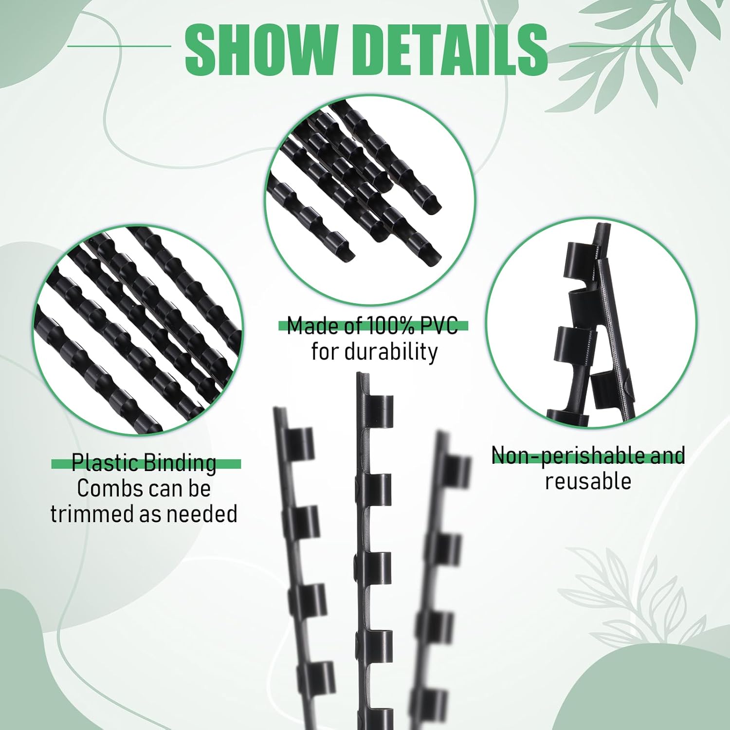 - Size Details: our black comb binding spines have proper size, approx. 1/4 inch, can hold up to 20 sheets of paper, can meet your different needs and give you good using experience