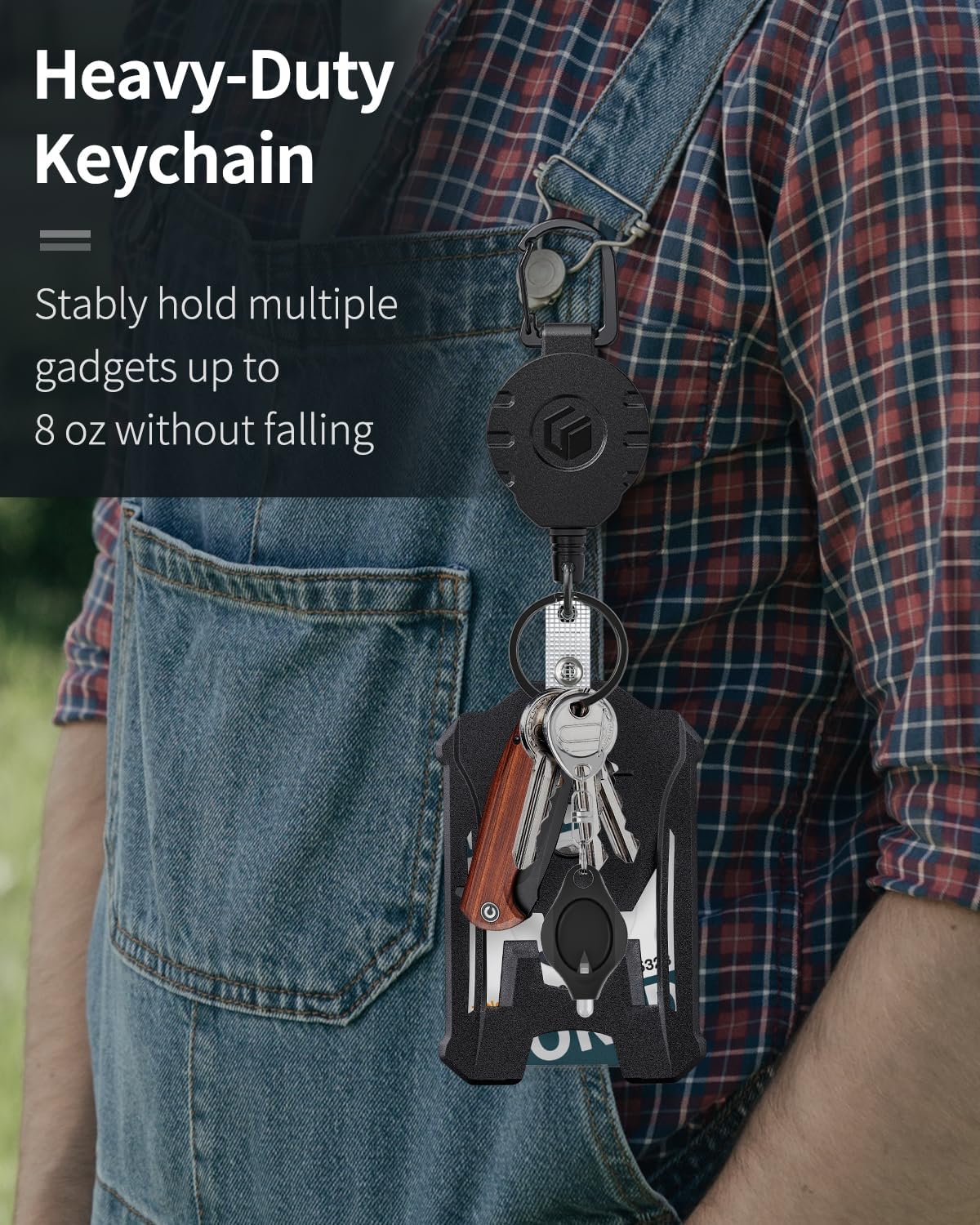 - Retractable Keychain: With built-in stainless steel spring coils, it has strong retraction force to endure pulls over 10,000 times and hold up to 8 oz. The 1 mm steel wire rope can stretch up to 31.5". Easy to open the door without removing the badge or key.