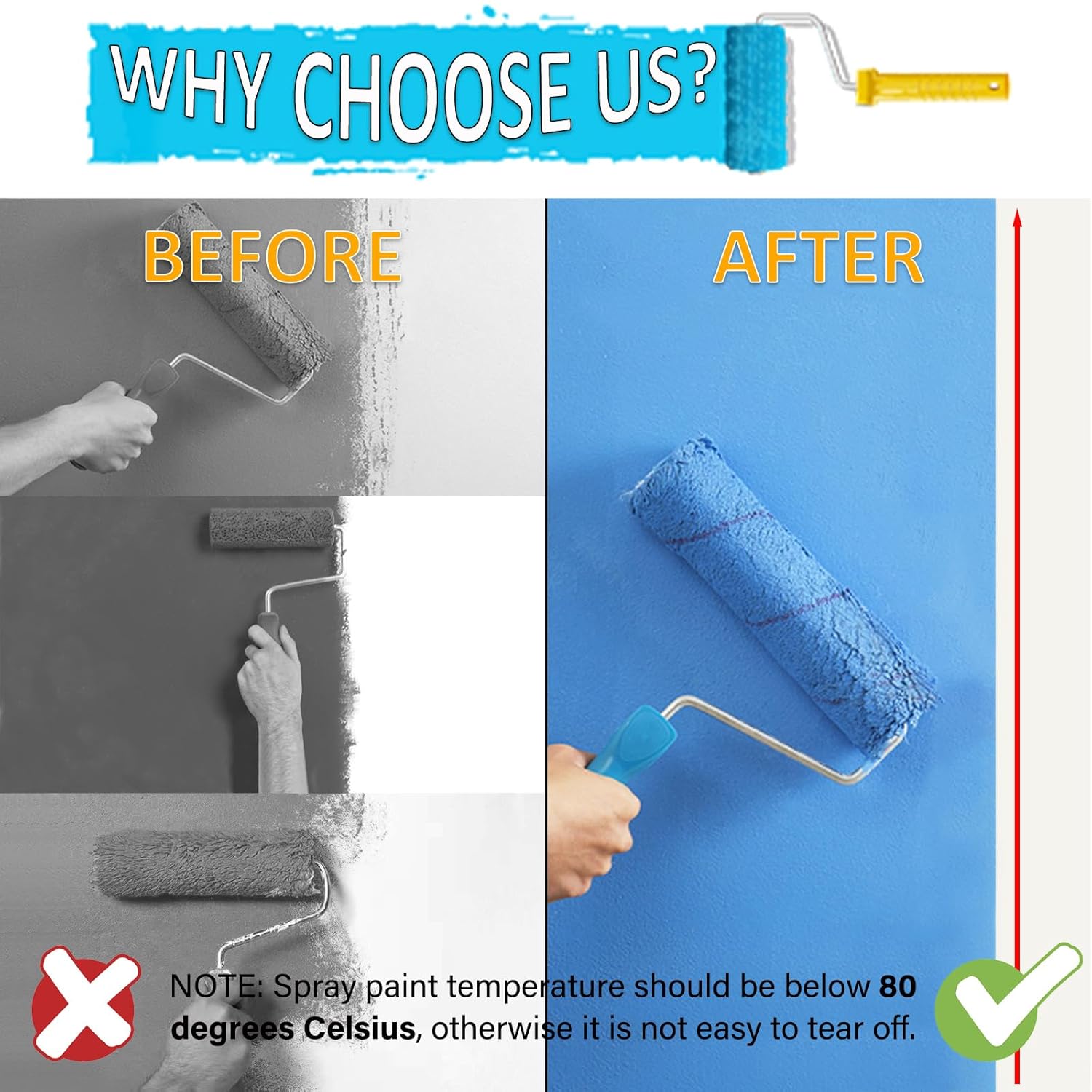- General Purpose Masking Tape Blue Easy to Use -- Apply the blue painting tape for walls on the surface and press it firmly at the same time. Before painting, let the paint masking tape fix for 30 to 60 minutes. When the paint is dry enough to touch, slowly lift the tape and take it out at a 45 degree angle. In order to obtain a good paint effect, please ensure that the water, oil and dust on the surface are cleaned before use, so that the multi-surface painting tape can be pasted correctly.